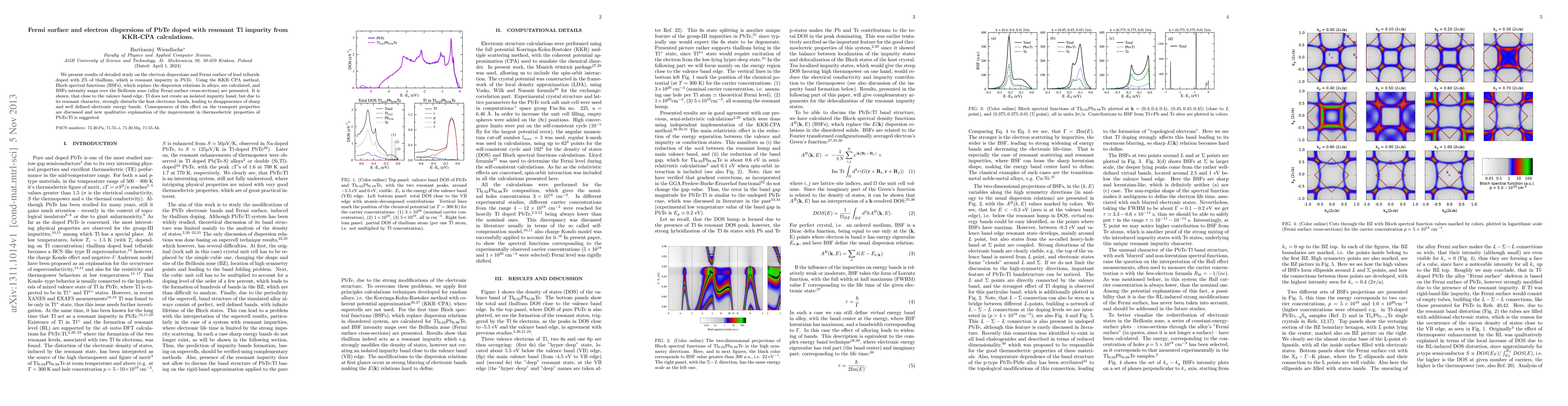 This study investigates the electron dispersions and Fermi surface of PbTe doped with resonant Tl impurities using KKR-CPA calculations. The results show that Tl disrupts the host electronic bands near the valence band edge, leading to a disappearance of distinct energy bands, which may explain the improved thermoelectric properties of PbTe:Tl.