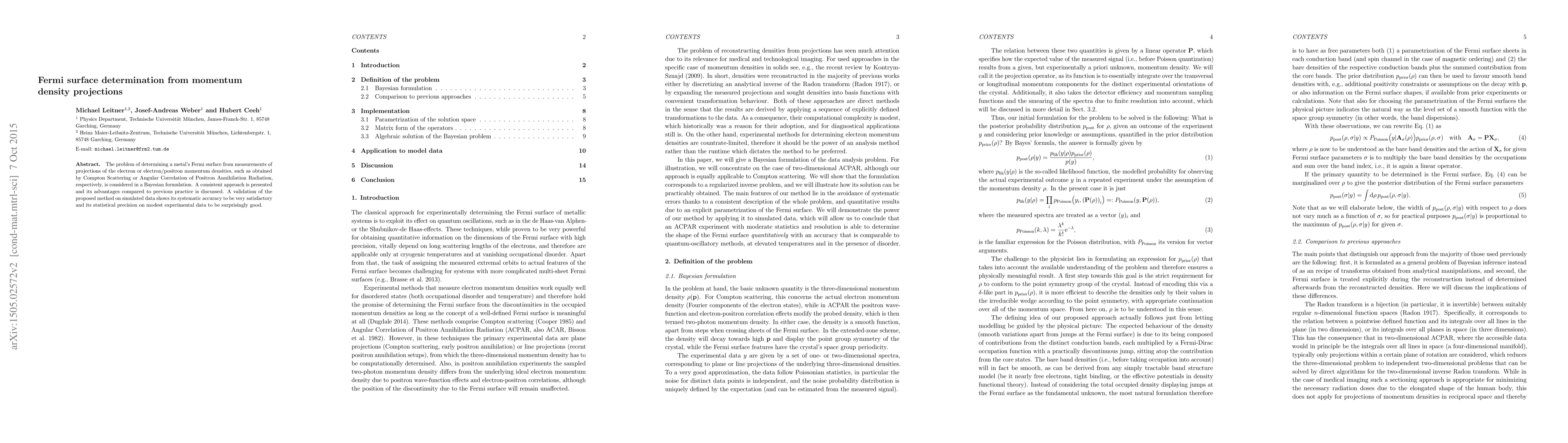 The problem of determining a metal's Fermi surface from measurements of projections of the electron or electron/positron momentum densities, such as obtained by Compton Scattering or Angular Correlation of Positron Annihilation Radiation, respectively, is considered in a Bayesian formulation. A consistent approach is presented and its advantages compared to previous practice is discussed. A validation of the proposed method on simulated data shows its systematic accuracy to be very satisfactory and its statistical precision on modest experimental data to be surprisingly good.