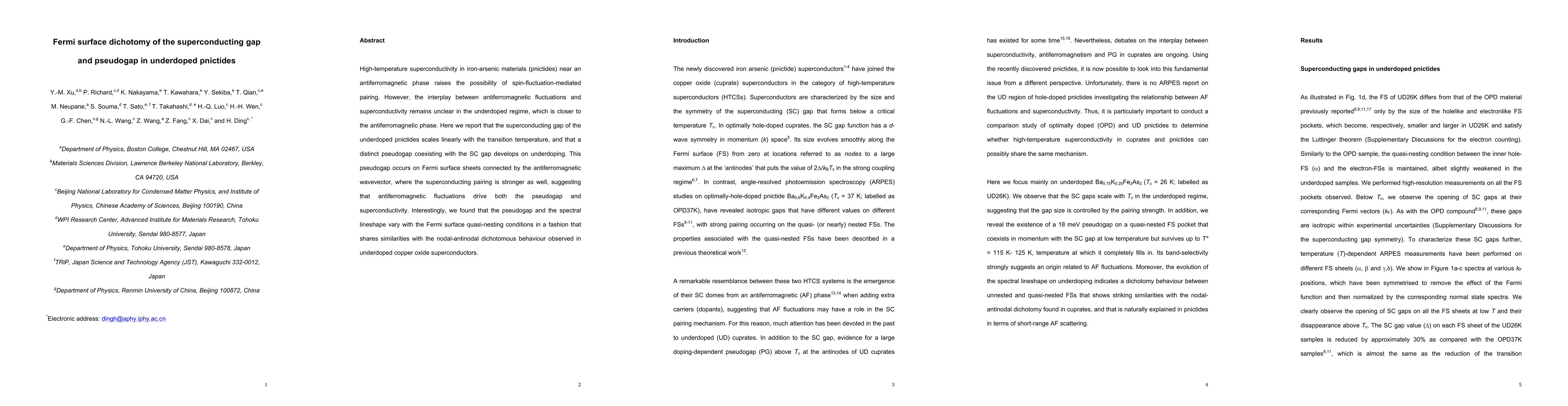 This study reveals that in underdoped pnictides, the superconducting gap scales linearly with temperature, while a pseudogap emerges on Fermi surface sheets connected by antiferromagnetic wavevectors. The findings suggest that antiferromagnetic fluctuations influence both the pseudogap and superconductivity, with quasi-nesting conditions affecting the pseudogap and spectral lineshape similarly to copper oxide superconductors.