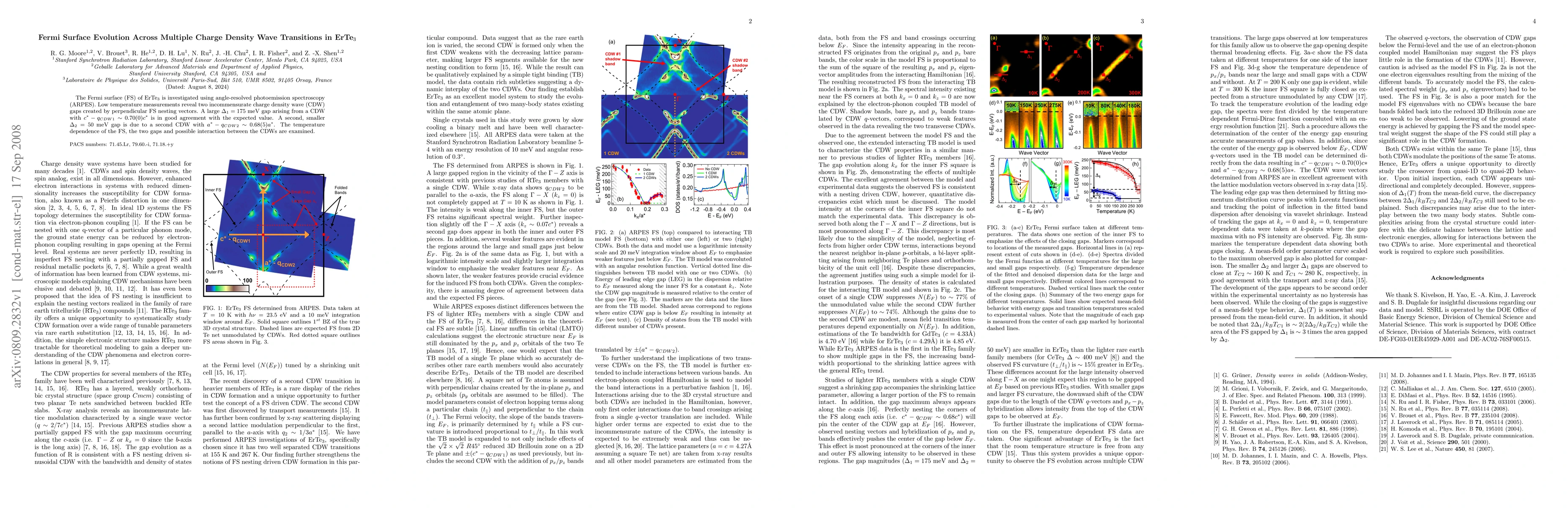 The Fermi surface (FS) of ErTe3 is investigated using angle-resolved photoemission spectroscopy (ARPES). Low temperature measurements reveal two incommensurate charge density wave (CDW) gaps created by perpendicular FS nesting vectors. A large Delta_1 = 175 meV gap arising from a CDW with c* - q_CDW1 ~ 0.70(0) c* is in good agreement with the expected value. A second, smaller Delta_2 = 50 meV gap is due to a second CDW with a* - q_CDW2 ~ 0.68(5) a*. The temperature dependence of the FS, the two gaps and possible interaction between the CDWs are examined.