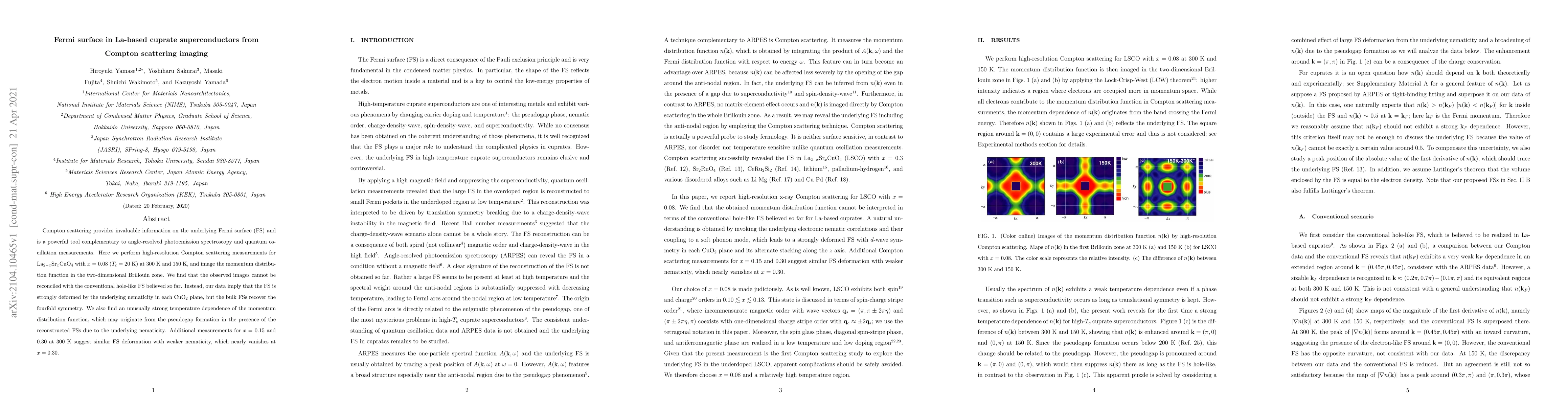 Compton scattering provides invaluable information on the underlying Fermi surface (FS) and is a powerful tool complementary to angle-resolved photoemission spectroscopy and quantum oscillation measurements. Here we perform high-resolution Compton scattering measurements for La_{2-x}Sr_{x}CuO_{4} with x=0.08 (Tc=20K) at 300K and 150K, and image the momentum distribution function in the two-dimensional Brillouin zone. We find that the observed images cannot be reconciled with the conventional hole-like FS believed so far. Instead, our data imply that the FS is strongly deformed by the underlying nematicity in each CuO_2 plane, but the bulk FSs recover the fourfold symmetry. We also find an unusually strong temperature dependence of the momentum distribution function, which may originate from the pseudogap formation in the presence of the reconstructed FSs due to the underlying nematicity. Additional measurements for x=0.15 and 0.30 at 300K suggest similar FS deformation with weaker nematicity, which nearly vanishes at x=0.30.