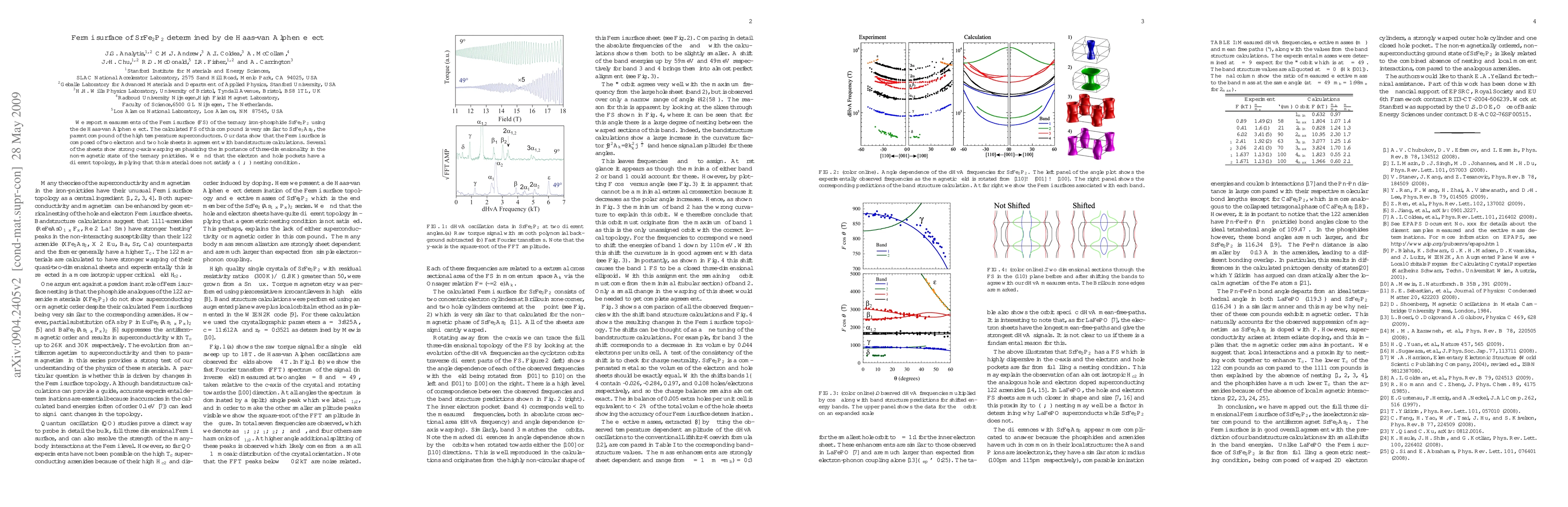 This study uses the de Haas-van Alphen effect to determine the Fermi surface of SrFe$_2$P$_2$, revealing two electron and two hole sheets similar to SrFe$_2$As$_2$. The research highlights significant c-axis warping and differing topologies of electron and hole pockets, indicating a lack of nesting condition.