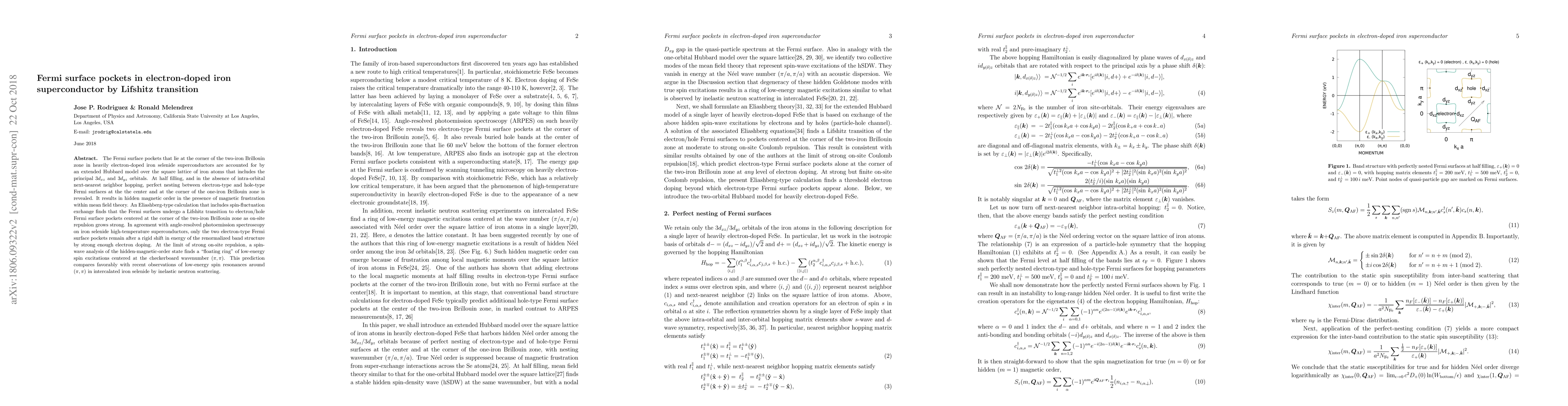 This paper explains how the Fermi surface in electron-doped iron selenide superconductors undergoes a Lifshitz transition due to the growth of on-site repulsion, leading to electron/hole pockets at the corners of the Brillouin zone. It also predicts a "floating ring" of low-energy spin excitations, consistent with recent neutron scattering observations.
