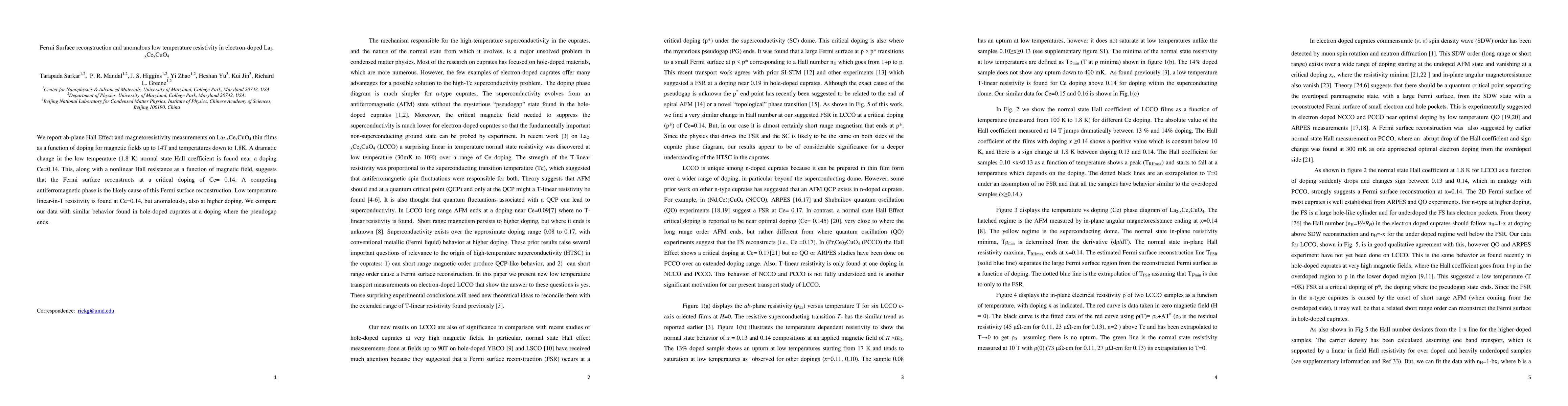 The paper distinguishes itself by identifying Fermi surface reconstruction in electron-doped cuprates and correlating it with anomalous low-temperature resistivity, providing insights into the complex interplay between Fermi surface, carriers, and mobility in high-temperature superconductors.