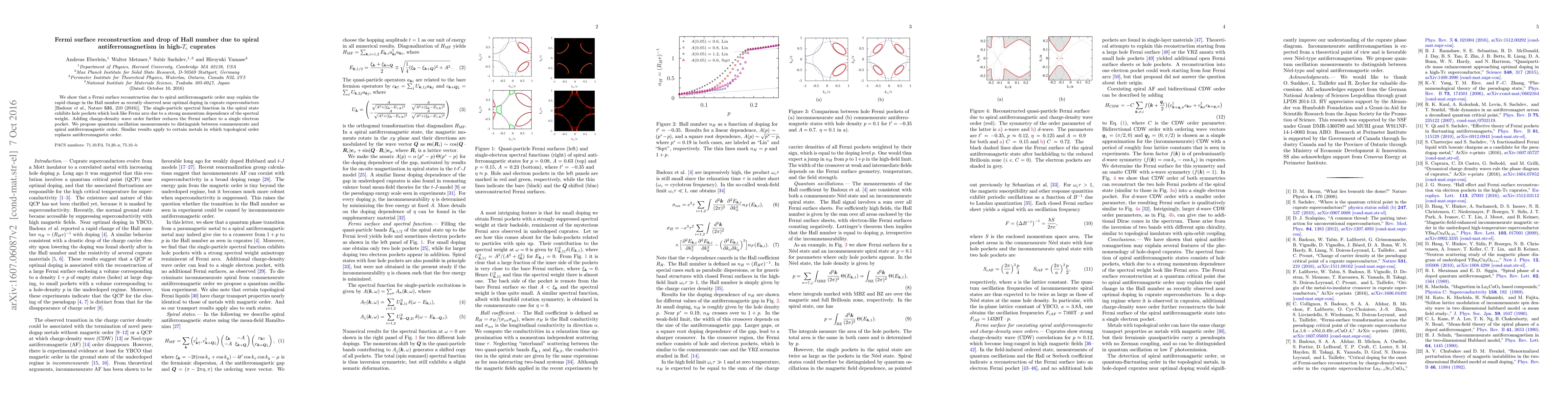 This paper demonstrates that Fermi surface reconstruction caused by spiral antiferromagnetic order can explain the observed drop in the Hall number in high-$T_c$ cuprate superconductors near optimal doping. The study suggests that quantum oscillation measurements can differentiate between spiral and commensurate antiferromagnetic orders.