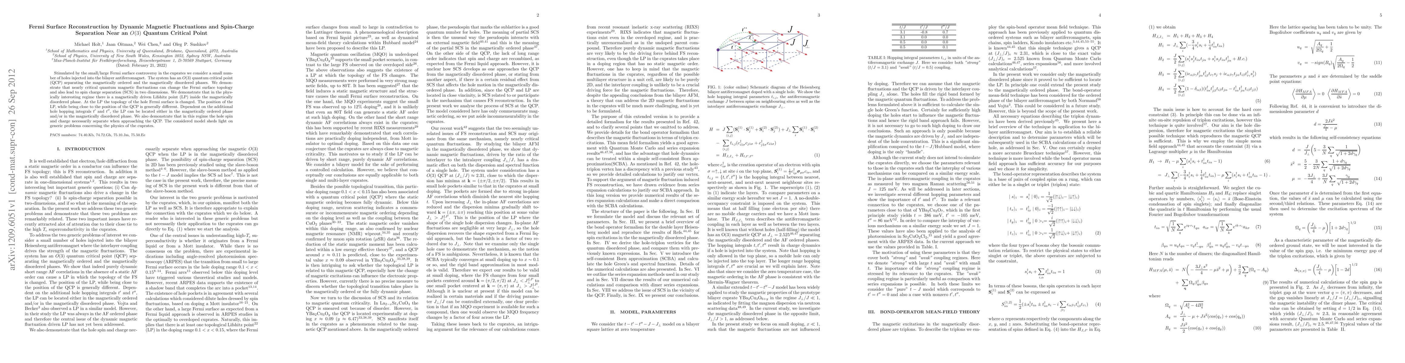 Stimulated by the small/large Fermi surface controversy in the cuprates we consider a small number of holes injected into the bilayer antiferromagnet. The system has an O(3) quantum critical point (QCP) separating the magnetically ordered and the magnetically disordered phases. We demonstrate that nearly critical quantum magnetic fluctuations can change the Fermi surface topology and also lead to spin charge separation (SCS) in two dimensions. We demonstrate that in the physically interesting regime there is a magnetically driven Lifshitz point (LP) inside the magnetically disordered phase. At the LP the topology of the hole Fermi surface is changed. The position of the LP, while being close to the position of the QCP is generally different. Dependent on the additional hole hopping integrals $t^{\prime}$ and $t^{\prime\prime}$, the LP can be located either in the magnetically ordered phase and/or in the magnetically disordered phase. We also demonstrate that in this regime the hole spin and charge necessarily separate when approaching the QCP. The considered model sheds light on generic problems concerning the physics of the cuprates.