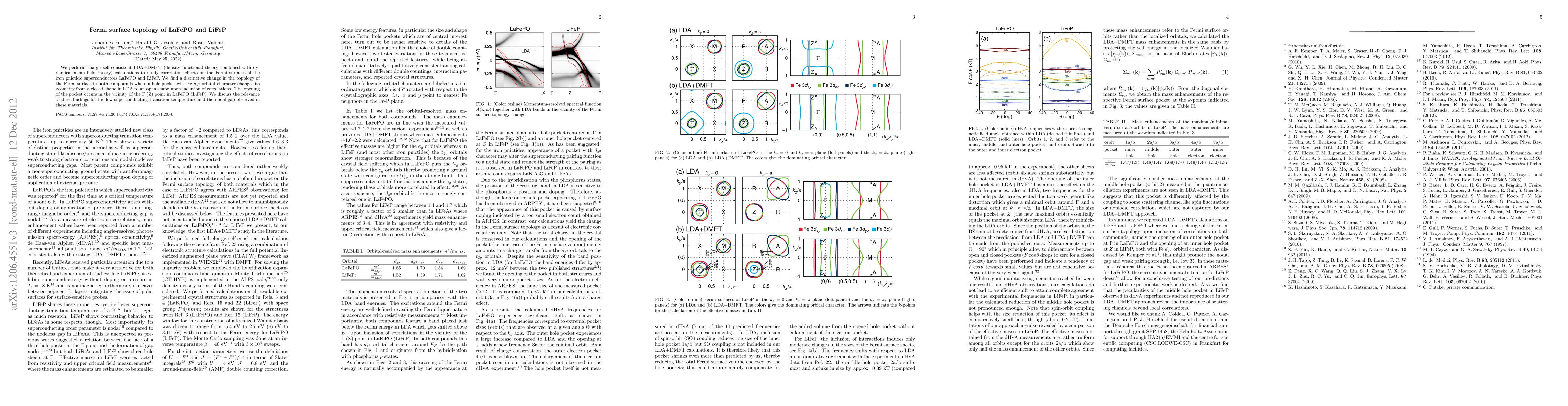 This study uses LDA+DMFT calculations to investigate the Fermi surface topology in LaFePO and LiFeP, revealing that correlation effects transform a closed hole pocket with Fe dz^2 orbital character into an open shape, altering the Fermi surface geometry.