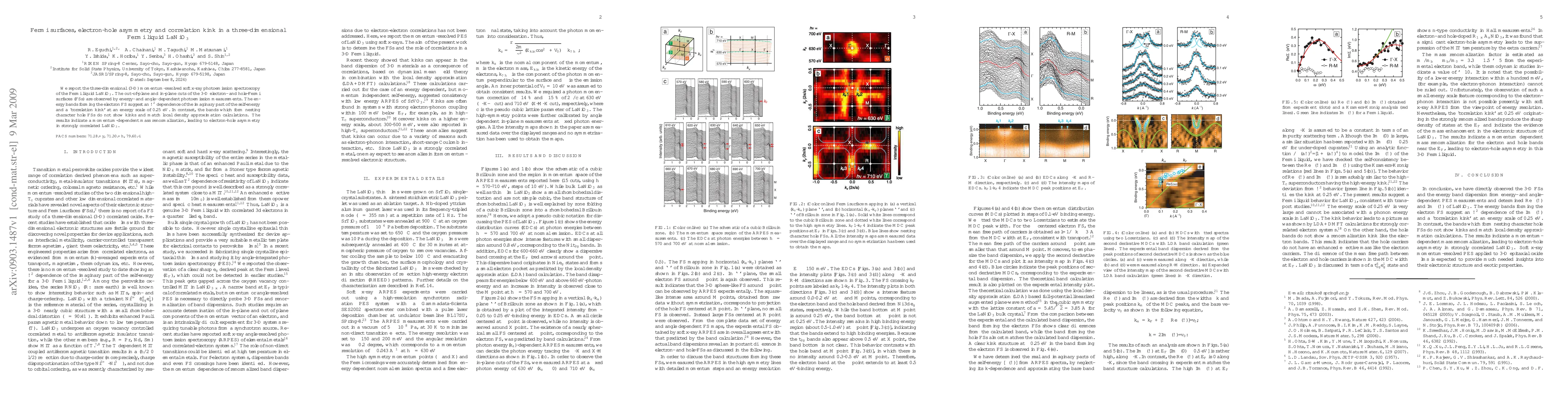 We report the three-dimensional (3-D) momentum-resolved soft x-ray photoemission spectroscopy of the Fermi liquid LaNiO$_3$. The out-of-plane and in-plane cuts of the 3-D electron- and hole-Fermi surfaces (FSs) are observed by energy- and angle- dependent photoemission measurements. The energy bands forming the electron FS suggest an $\omega^2$ dependence of the imaginary part of the self-energy and a `correlation kink' at an energy scale of 0.25 eV. In contrast, the bands which form nesting character hole FSs do not show kinks and match local density approximation calculations. The results indicate a momentum-dependent mass renormalization, leading to electron-hole asymmetry in strongly correlated LaNiO$_3$.