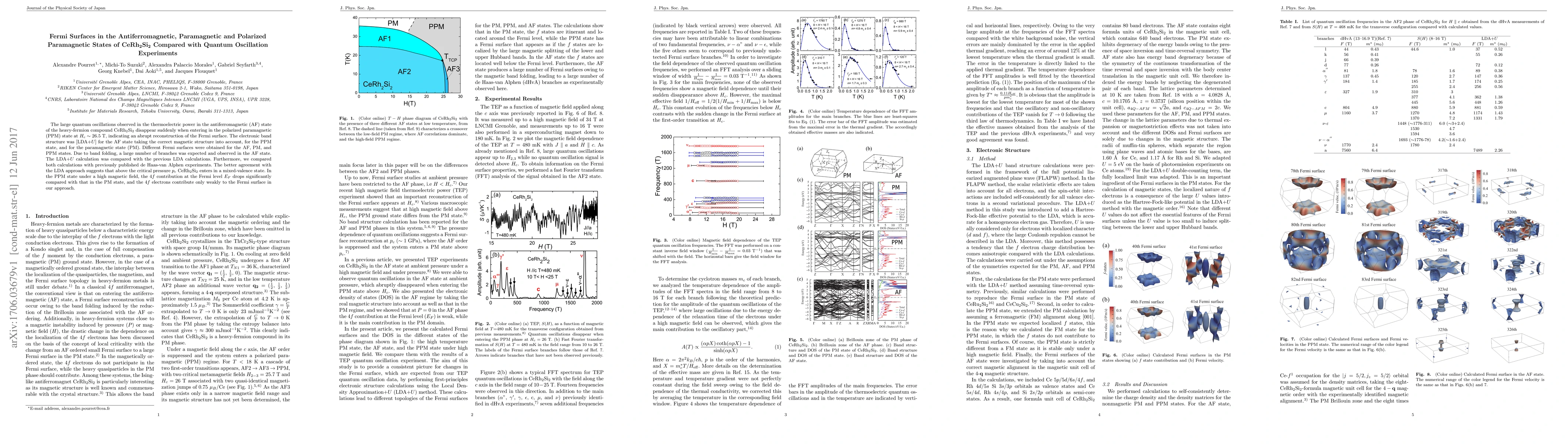 The large quantum oscillations observed in the thermoelectric power in the antiferromagnetic (AF) state of the heavy-fermion compound CeRh2Si2 disappear suddenly when entering in the polarized paramagnetic (PPM) state at Hc=26.5 T, indicating an abrupt reconstruction of the Fermi surface. The electronic band structure was [LDA+U] for the AF state taking the correct magnetic structure into account, for the PPM state, and for the paramagnetic state (PM). Different Fermi surfaces were obtained for the AF, PM, and PPM states. Due to band folding, a large number of branches was expected and observed in the AF state. The LDA+U calculation was compared with the previous LDA calculations. Furthermore, we compared both calculations with previously published de Haas-van Alphen experiments. The better agreement with the LDA approach suggests that above the critical pressure pc CeRh2Si2 enters in a mixed-valence state. In the PPM state under a high magnetic field, the 4f contribution at the Fermi level EF drops significantly compared with that in the PM state, and the 4f electrons contribute only weakly to the Fermi surface in our approach.