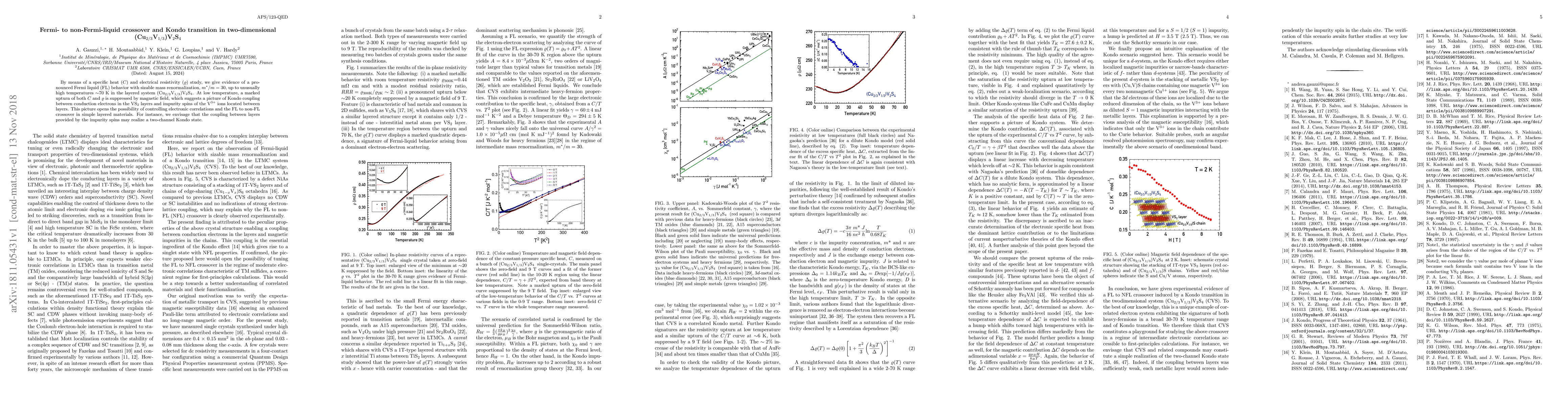 The paper presents a study on Cu$_{2/3}$V$_{1/3}$V$_2$S$_4$, revealing a Fermi liquid behavior with significant mass renormalization up to 70K. A magnetic field suppresses a low-temperature upturn in specific heat and electrical resistivity, indicating Kondo coupling between conduction electrons and V$^{3+}$ impurity spins. This suggests potential control of electronic correlations and a Fermi-to-non-Fermi liquid crossover in layered materials, possibly enabling a two-channel Kondo state.