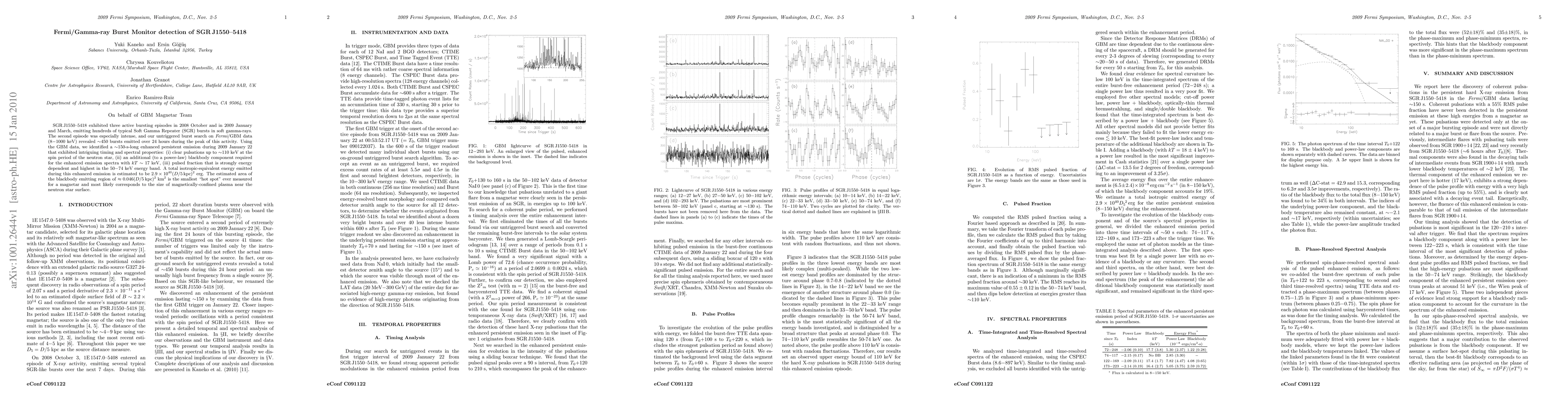 The Fermi/GBM detected hundreds of SGR bursts from SGR J1550-5418 during intense activity episodes in 2008 and 2009. Notably, a ~150-s-long enhanced persistent emission in January 2009 showed clear pulsations, a blackbody component, and a small emitting region, indicating a highly magnetic neutron star.