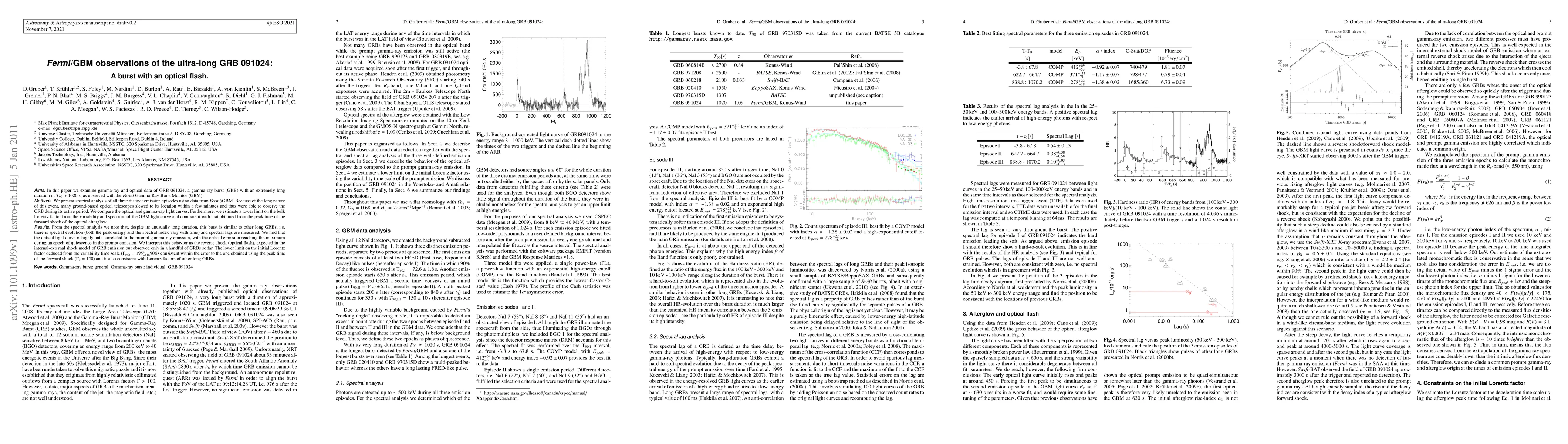 In this paper we examine gamma-ray and optical data of GRB 091024, a gamma-ray burst (GRB) with an extremely long duration of T90~1020 s, as observed with the Fermi Gamma-Ray Burst Monitor (GBM). We present spectral analysis of all three distinct emission episodes using data from Fermi/GBM. Because of the long nature of this event, many ground-based optical telescopes slewed to its location within a few minutes and thus were able to observe the GRB during its active period. We compare the optical and gamma-ray light curves. Furthermore, we estimate a lower limit on the bulk Lorentz factor from the variability and spectrum of the GBM light curve and compare it with that obtained from the peak time of the forward shock of the optical afterglow. From the spectral analysis we note that, despite its unusually long duration, this burst is similar to other long GRBs, i.e. there is spectral evolution (both the peak energy and the spectral index vary with time) and spectral lags are measured. We find that the optical light curve is highly anti-correlated to the prompt gamma-ray emission, with the optical emission reaching the maximum during an epoch of quiescence in the prompt emission. We interpret this behavior as the reverse shock (optical flash), expected in the internal-external shock model of GRB emission but observed only in a handful of GRBs so far. The lower limit on the initial Lorentz factor deduced from the variability time scale ($\Gamma_{min}=195_{-110}^+{90}$)is consistent within the error to the one obtained using the peak time of the forward shock ($\Gamma_0=120$) and is also consistent with Lorentz factors of other long GRBs.