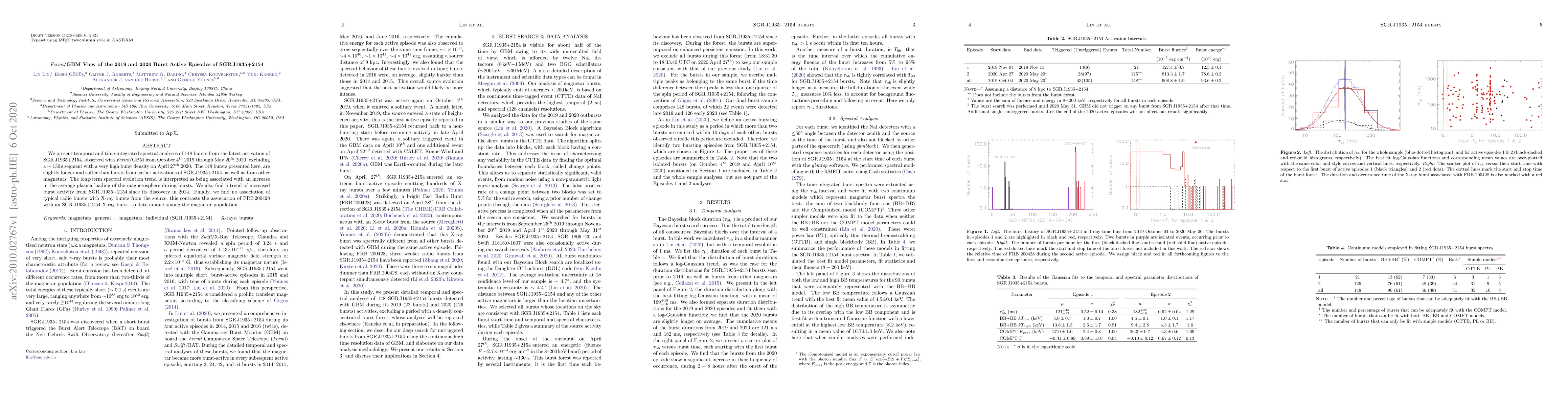 This paper analyzes 148 bursts from SGR J1935+2154 observed by Fermi/GBM, noting longer and softer bursts compared to earlier activations, and links spectral evolution to increased plasma loading. It also highlights a rising trend in burst activity since 2014, with no typical radio burst association found.