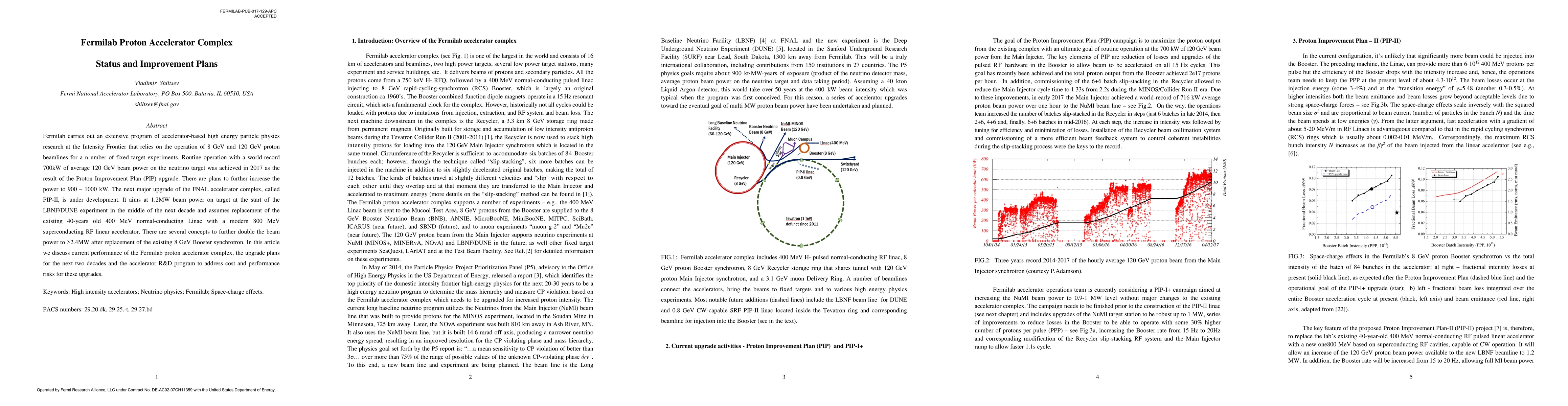 The Fermilab proton accelerator complex, which supports high energy particle physics research, has achieved a world-record 700kW of 120 GeV beam power following the PIP upgrade. Future plans include the PIP-II upgrade aiming for 1.2MW beam power and the replacement of aging infrastructure with modern technology.