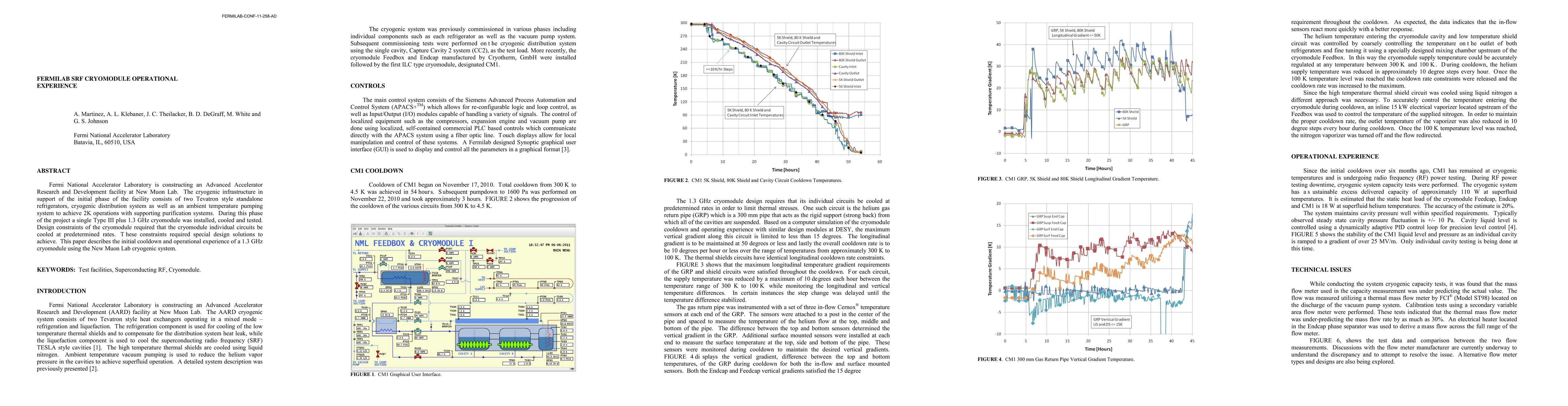 Fermi National Accelerator Laboratory is constructing an Advanced Accelerator Research and Development facility at New Muon Lab. The cryogenic infrastructure in support of the initial phase of the facility consists of two Tevatron style standalone refrigerators, cryogenic distribution system as well as an ambient temperature pumping system to achieve 2 K operations with supporting purification systems. During this phase of the project a single Type III plus 1.3 GHz cryomodule was installed, cooled and tested. Design constraints of the cryomodule required that the cryomodule individual circuits be cooled at predetermined rates. These constraints required special design solutions to achieve. This paper describes the initial cooldown and operational experience of a 1.3 GHz cryomodule using the New Muon Lab cryogenic system.