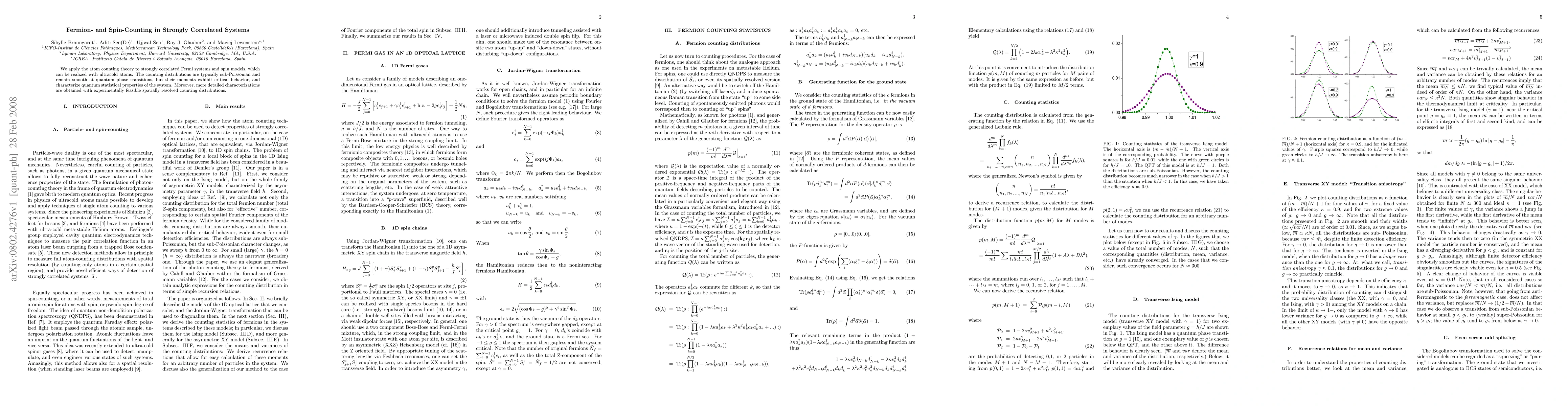 This paper applies atom counting theory to strongly correlated Fermi systems and spin models, revealing that while counting distributions are sub-Poissonian and smooth at quantum phase transitions, their moments show critical behavior and provide insights into the quantum statistical properties of the system. Spatially resolved counting distributions offer more detailed characterizations, facilitating experimental verification.