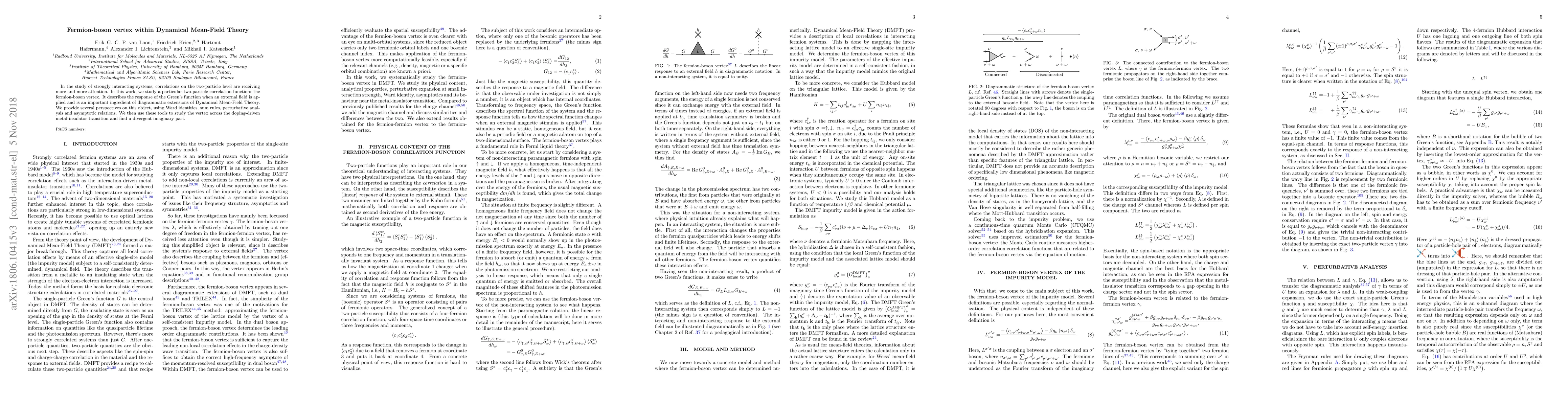 This paper investigates the fermion-boson vertex within Dynamical Mean-Field Theory, employing Ward identities, sum rules, and perturbative analysis to explore its role in strongly interacting systems. The study reveals a divergence in the imaginary part of the vertex across the metal-insulator transition, highlighting its significance in understanding such transitions.