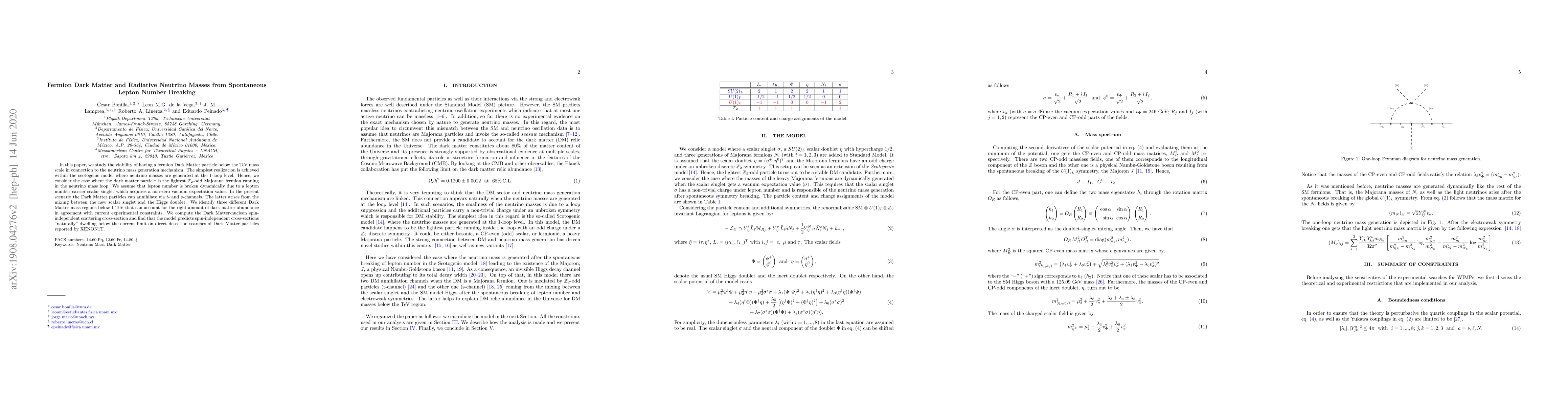 In this paper, we study the viability of having a fermion Dark Matter particle below the TeV mass scale in connection to the neutrino mass generation mechanism. The simplest realization is achieved within the scotogenic model where neutrino masses are generated at the 1-loop level. Hence, we consider the case where the dark matter particle is the lightest $\mathbb{Z}_2$-odd Majorana fermion running in the neutrino mass loop. We assume that lepton number is broken dynamically due to a lepton number carrier scalar singlet which acquires a non-zero vacuum expectation value. In the present scenario the Dark Matter particles can annihilate via $t$- and $s$-channels. The latter arises from the mixing between the new scalar singlet and the Higgs doublet. We identify three different Dark Matter mass regions below 1 TeV that can account for the right amount of dark matter abundance in agreement with current experimental constraints. We compute the Dark Matter-nucleon spin-independent scattering cross-section and find that the model predicts spin-independent cross-sections ``naturally'' dwelling below the current limit on direct detection searches of Dark Matter particles reported by XENON1T.