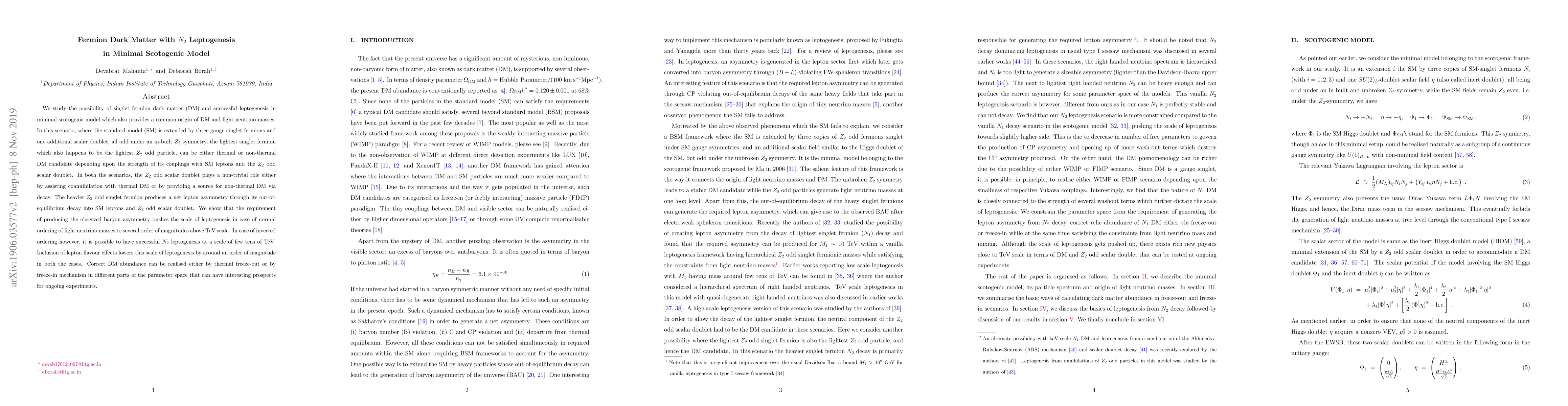 The paper explores the possibility of singlet fermion dark matter and successful leptogenesis in the minimal scotogenic model, showing that the lightest singlet fermion can serve as both thermal and non-thermal dark matter candidates. The model, extended with three gauge singlet fermions and a scalar doublet, demonstrates that leptogenesis can occur at scales of tens to hundreds of TeV, depending on neutrino mass ordering and lepton flavour effects. Dark matter abundance is achieved through freeze-out or freeze-in mechanisms across different parameter spaces, offering potential implications for ongoing experiments.