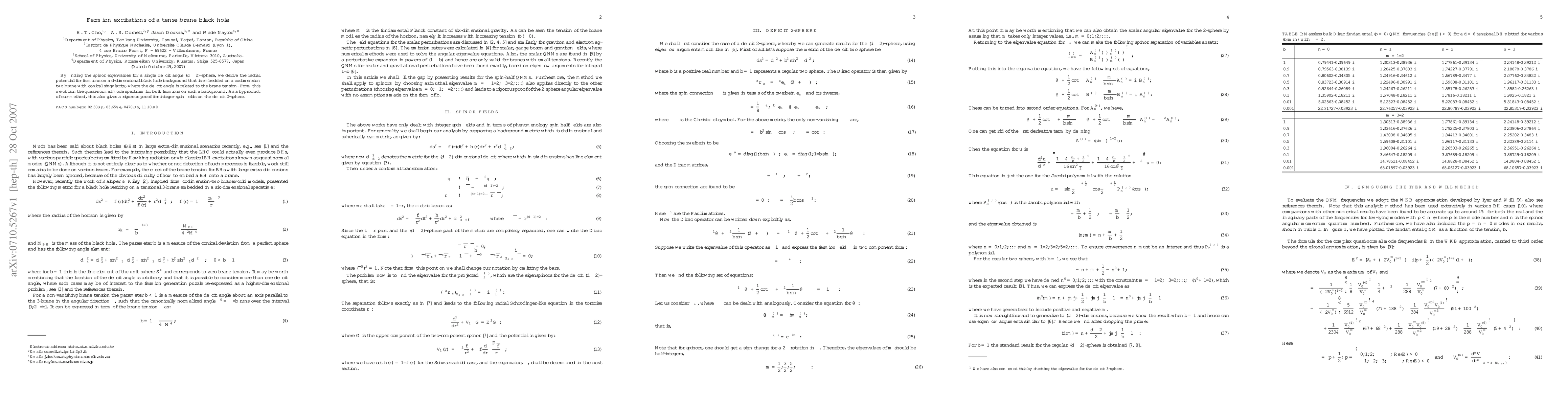 This paper derives the radial potential for fermions on a d-dimensional black hole embedded on a brane with a conical singularity, linking the deficit angle to brane tension, and computes the quasi-normal mode spectrum for bulk fermions, also providing a proof for integer spin fields on the deficit 2-sphere.