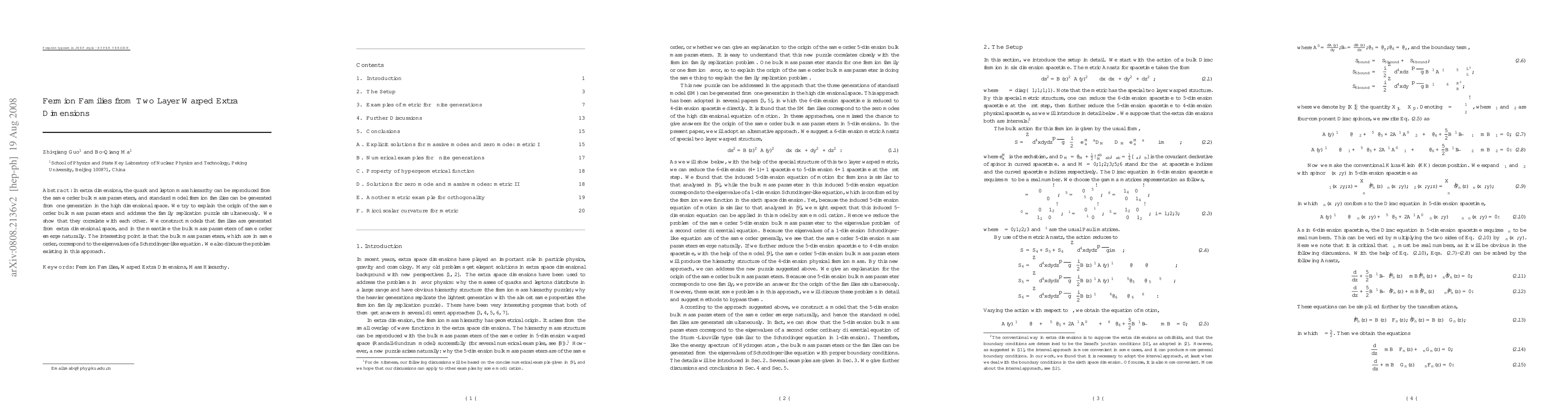 This paper proposes a model where quark and lepton mass hierarchies are explained through the same order bulk mass parameters in extra dimensions, generating standard model fermion families from a single generation in high-dimensional space. It correlates the origin of these bulk mass parameters with the family replication puzzle, showing that they naturally emerge from the Schrödinger-like equation eigenvalues.