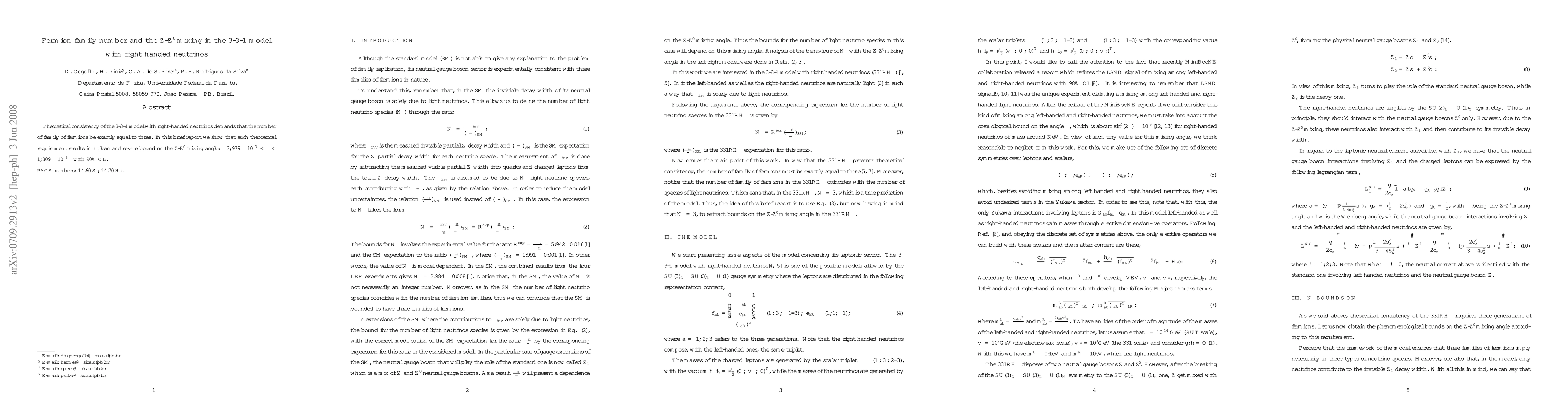 This paper investigates the 3-3-1 model with right-handed neutrinos, demonstrating that the theoretical requirement of exactly three fermion families imposes a stringent bound on the Z-Z′ mixing angle, specifically $-3.979\times 10^{-3}<\phi<1.309\times 10^{-4}$ with 90% confidence level.