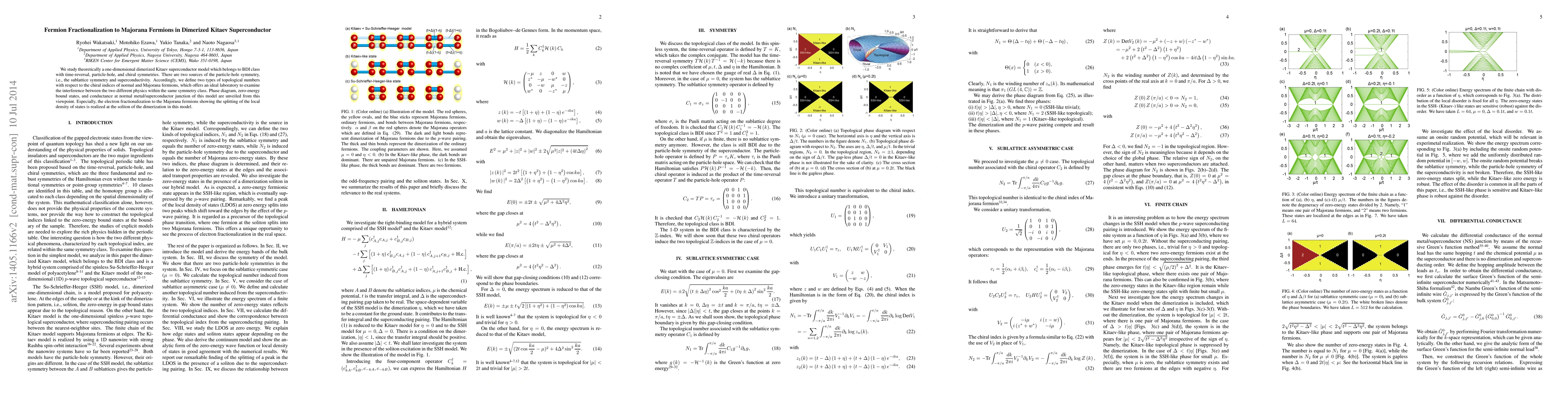 This paper investigates a one-dimensional dimerized Kitaev superconductor, revealing electron fractionalization to Majorana fermions and demonstrating the interference between sublattice symmetry and superconductivity. It uncovers a phase diagram, zero-energy bound states, and conductance features at junctions, highlighting the splitting of local density of states at solitons of dimerization.