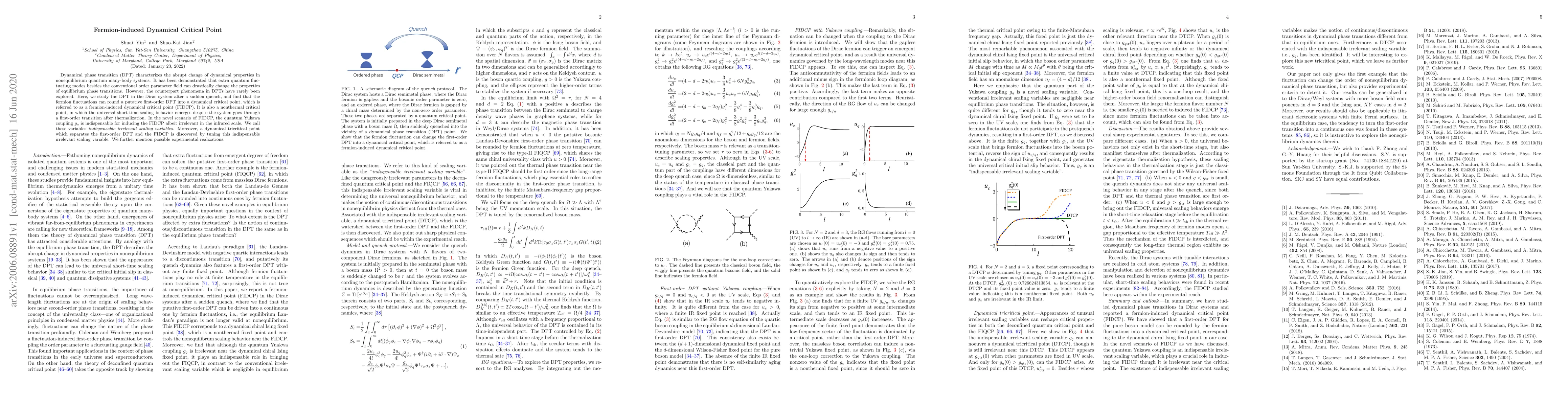 This paper investigates dynamical phase transitions in nonequilibrium quantum systems, demonstrating that fermion fluctuations can transform a first-order transition into a fermion-induced dynamical critical point (FIDCP). The study highlights the role of an indispensable irrelevant scaling variable, the quantum Yukawa coupling $g_q$, in inducing this critical point.