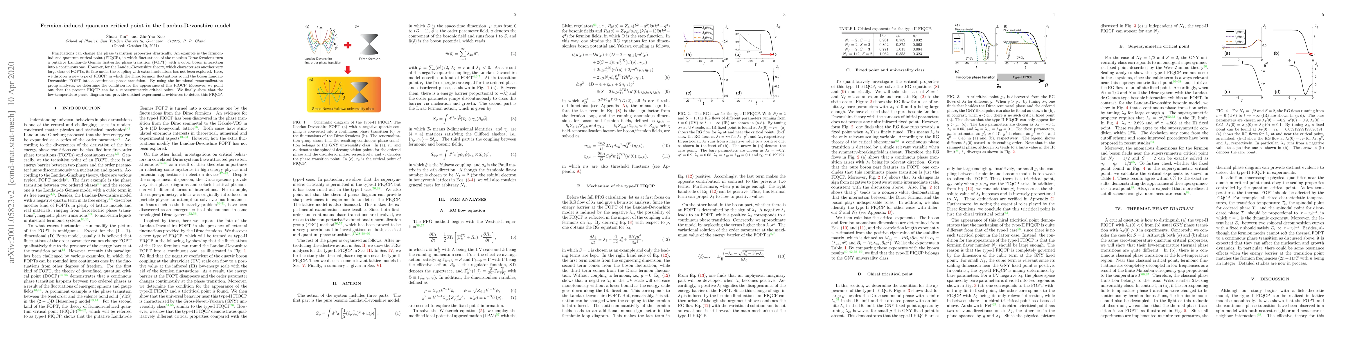 This paper explores the emergence of a fermion-induced quantum critical point (FIQCP) in the Landau-Devonshire model, revealing how Dirac fermion fluctuations transform a first-order phase transition into a continuous one. The study uses functional renormalization group analyses to determine the conditions for this FIQCP and suggests it may be a supersymmetric critical point, with potential experimental signatures in the low-temperature phase diagram.