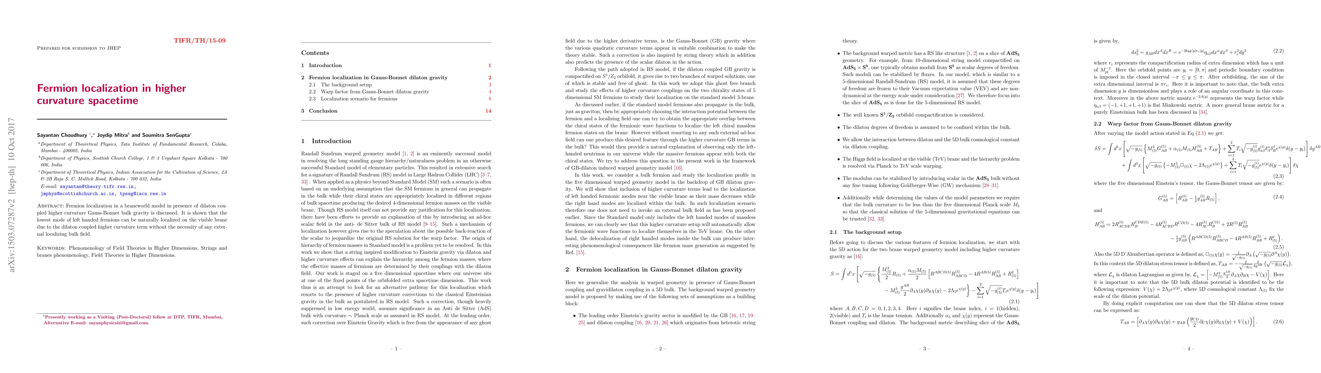 This paper explores fermion localization in a braneworld model with dilaton-coupled higher curvature Gauss-Bonnet gravity, demonstrating that the lowest mode of left-handed fermions can be localized on the visible brane through the intrinsic higher curvature term, without requiring additional bulk fields.
