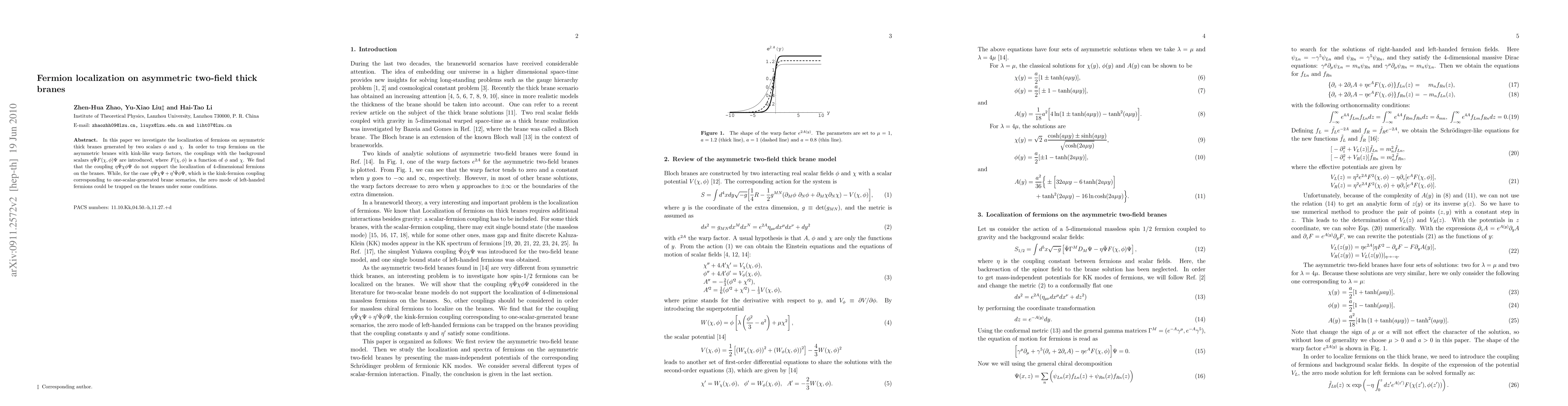 This paper explores the localization of fermions on asymmetric thick branes formed by two scalar fields, $\phi$ and $\chi$, with specific coupling functions. It finds that certain couplings do not localize 4D fermions, while a specific kink-fermion coupling can trap the zero mode of left-handed fermions under certain conditions.
