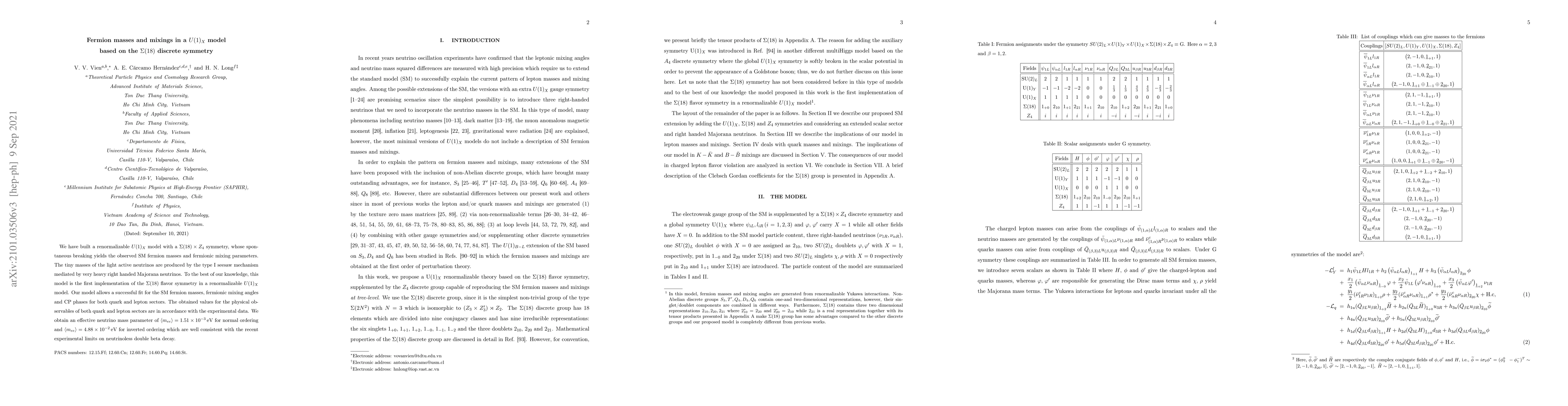 This paper proposes a $U(1)_X$ model with $\Sigma (18)\times Z_4$ symmetry to explain Standard Model fermion masses and mixings, utilizing the type I seesaw mechanism for light neutrino masses. The model successfully fits experimental data and predicts effective neutrino mass parameters consistent with current experimental limits.