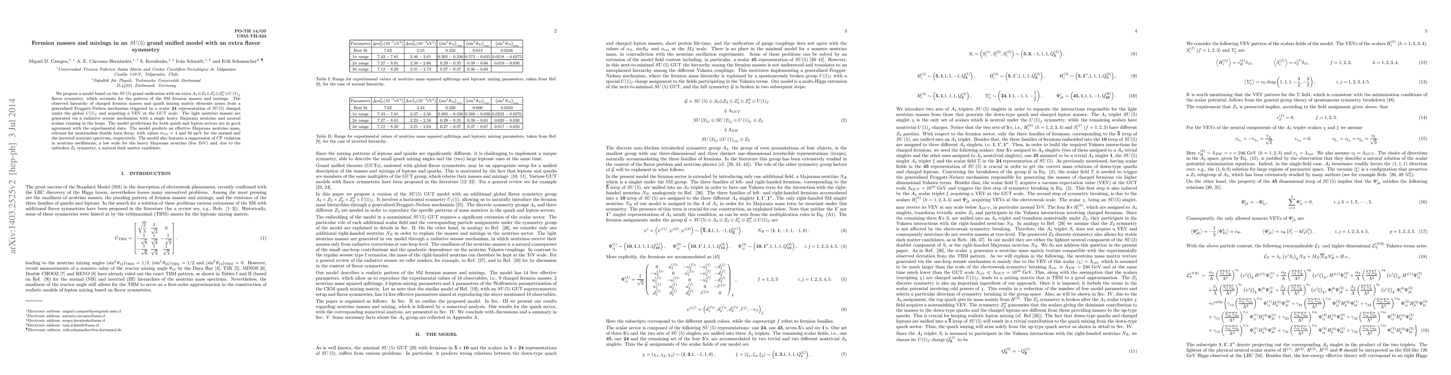 We propose a model based on the $SU(5)$ grand unification with an extra $A_{4}\otimes Z_{2}\otimes Z_{2}^{\prime }\otimes Z_{2}^{\prime \prime}\otimes U\left( 1\right) _{f}$ flavor symmetry, which accounts for the pattern of the SM fermion masses and mixings. The observed hierarchy of charged fermion masses and quark mixing matrix elements arises from a generalized Froggatt-Nielsen mechanism triggered by a scalar $\mathbf{24}$ representation of $SU(5)$ charged under the global $U(1)_{f}$ and acquiring a VEV at the GUT scale. The light neutrino masses are generated via a radiative seesaw mechanism with a single heavy Majorana neutrino and neutral scalars running in the loops. The model predictions for both quark and lepton sectors are in good agreement with the experimental data. The model predicts an effective Majorana neutrino mass, relevant for neutrinoless double beta decay, with values $m_{\beta \beta }=$ 4 and 50 meV for the normal and the inverted neutrino spectrum, respectively. The model also features a suppression of CP violation in neutrino oscillations, a low scale for the heavy Majorana neutrino (few TeV) and, due to the unbroken $Z_{2}$ symmetry, a natural dark matter candidate.