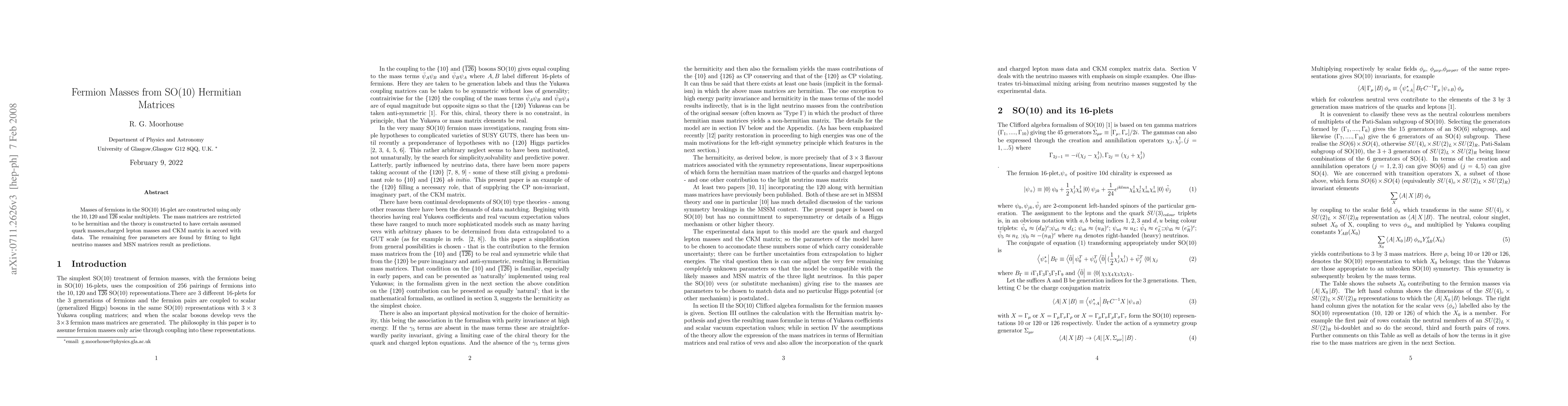 Masses of fermions in the SO(10) 16-plet are constructed using only the 10, 120 and 126 scalar multiplets. The mass matrices are restricted to be hermitian and the theory is constructed to have certain assumed quark masses, charged lepton masses and CKM matrix in accord with data. The remaining free parameters are found by fitting to light neutrino masses and MSN matrices result as predictions.