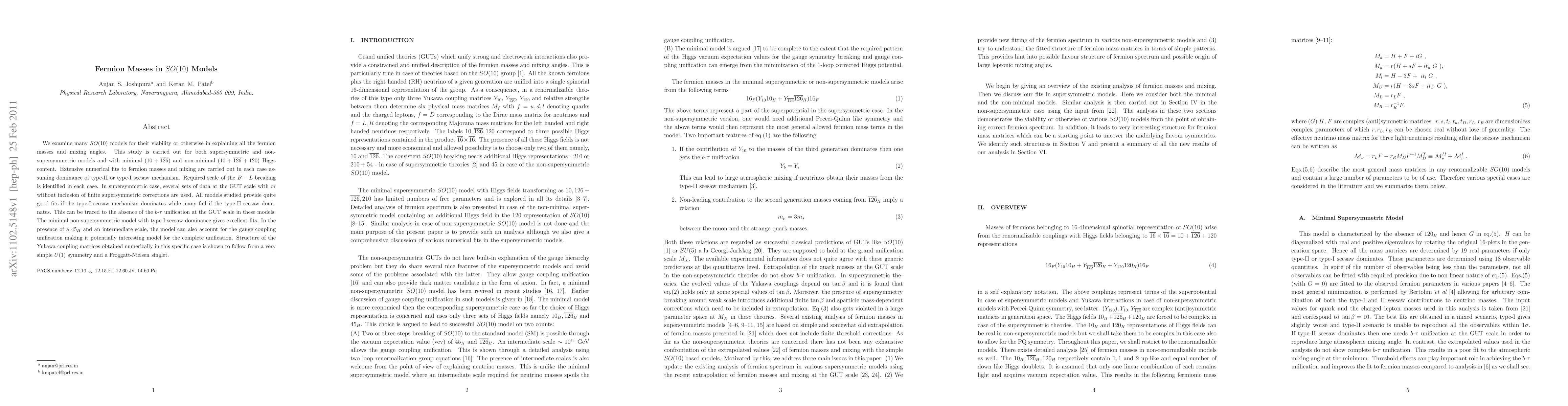 This paper investigates the viability of various SO(10) models in explaining fermion masses and mixing angles, finding that type-I seesaw mechanisms yield better fits than type-II, especially in minimal non-supersymmetric models. The study highlights the potential of these models for gauge coupling unification.