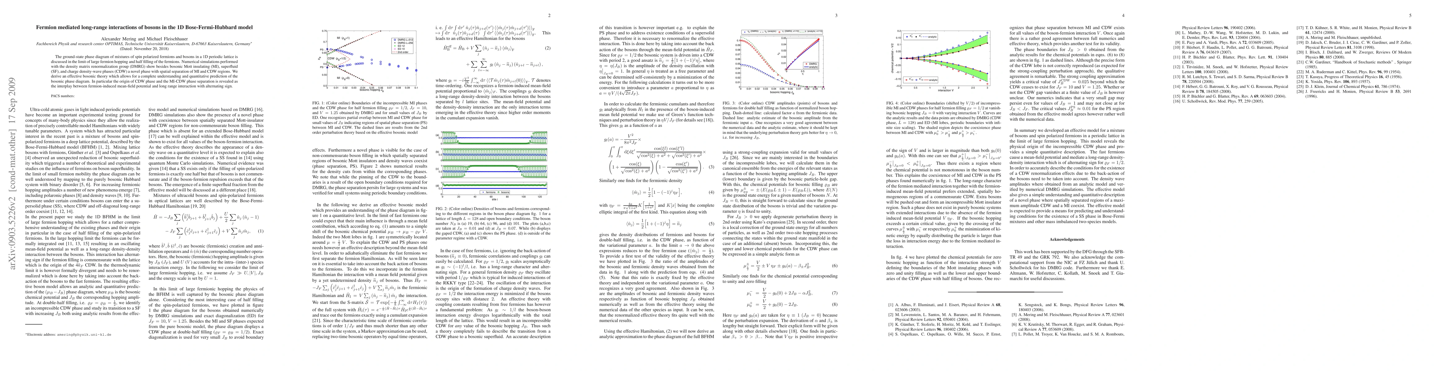 The ground-state phase diagram of mixtures of spin polarized fermions and bosons in a 1D periodic lattice is discussed in the limit of large fermion hopping and half filling of the fermions. Numerical simulations performed with the density matrix renormalization group (DMRG) show besides bosonic Mott insulating (MI), superfluid (SF), and charge density-wave phases (CDW) a novel phase with spatial separation of MI and CDW regions. We derive an effective bosonic theory which allows for a complete understanding and quantitative prediction of the bosonic phase diagram. In particular the origin of CDW phase and the MI-CDW phase separation is revealed as the interplay between fermion-induced mean-field potential and long range interaction with alternating sign.