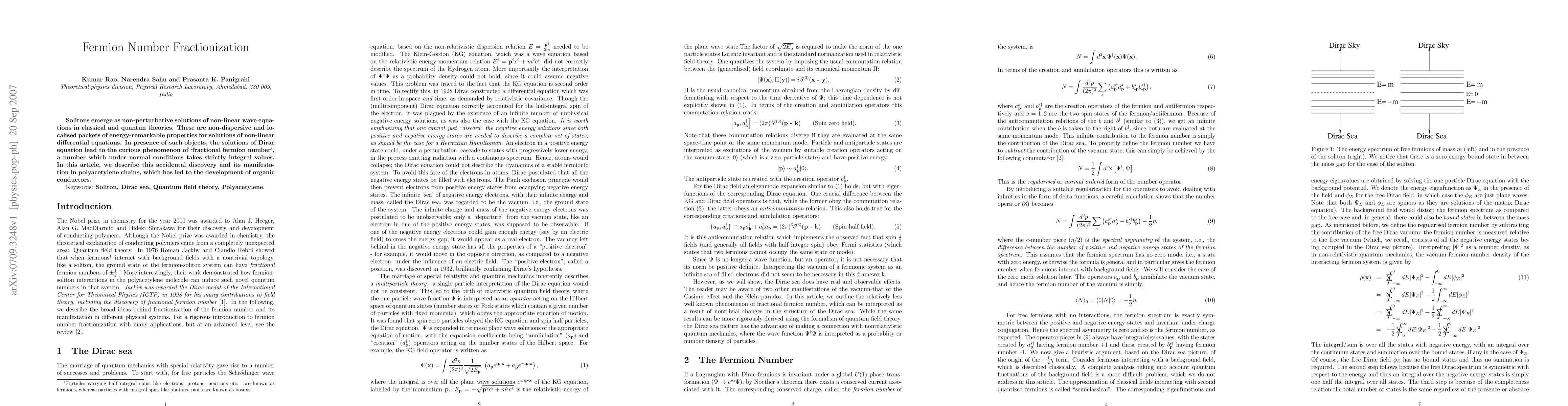Researchers describe the phenomenon of fractional fermion number in solutions to Dirac equations, which led to the discovery of organic conductors in polyacetylene chains.