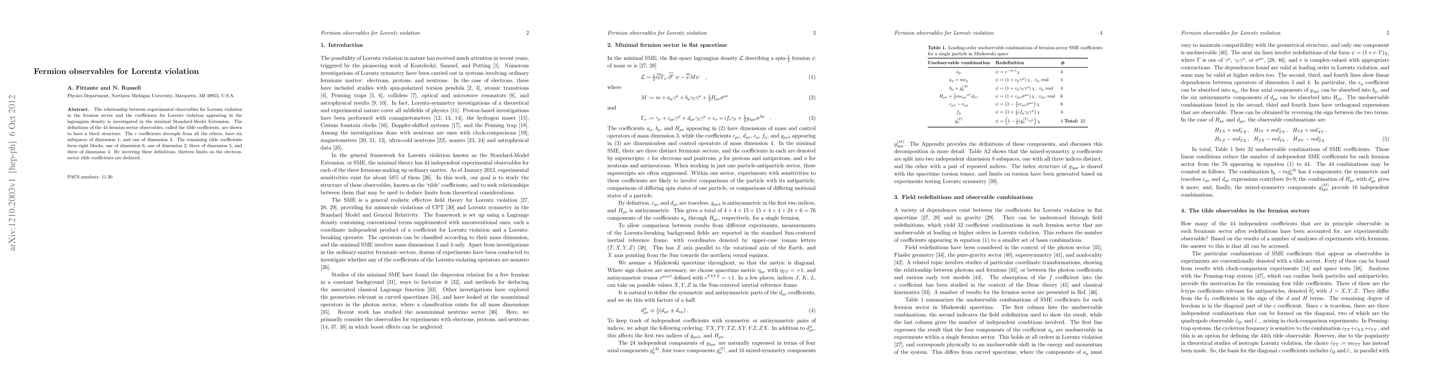 This paper investigates the relationship between experimental observables for Lorentz violation in the fermion sector and the coefficients in the minimal Standard-Model Extension's Lagrangian. It reveals a block structure for the 44 fermion-sector observables, leading to thirteen limits on the electron-sector coefficients.