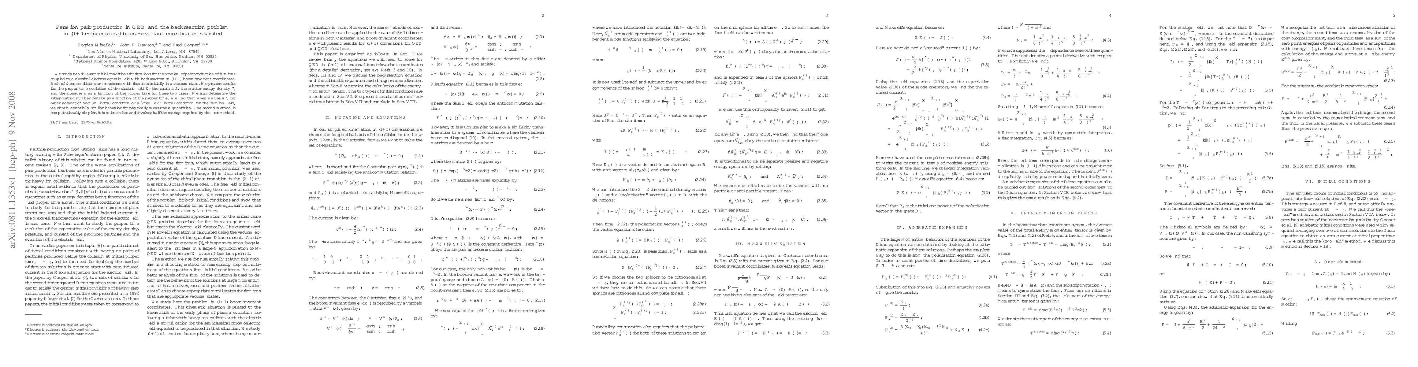 We study two different initial conditions for fermions for the problem of pair production of fermions coupled to a classical electromagnetic field with backreaction in \oneplusone boost-invariant coordinates. Both of these conditions are consistent with fermions initially in a vacuum state. We present results for the proper time evolution of the electric field $E$, the current, the matter energy density, and the pressure as a function of the proper time for these two cases. We also determine the interpolating number density as a function of the proper time. We find that when we use a "first order adiabatic" vacuum initial condition or a "free field" initial condition for the fermion field, we obtain essentially similar behavior for physically measurable quantities. The second method is computationally simpler, it is twice as fast and involves half the storage required by the first method.
