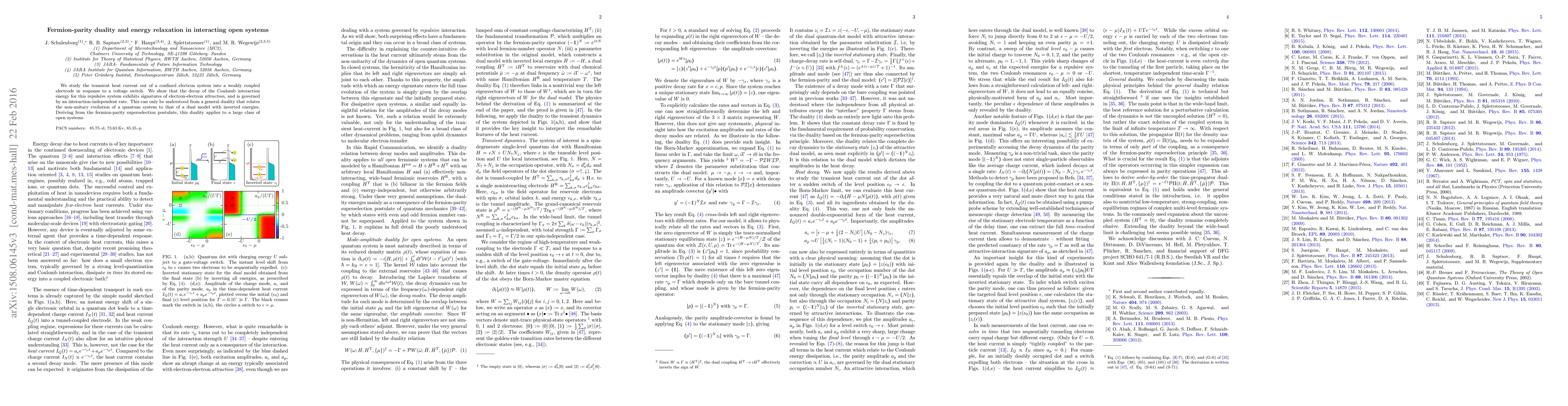 We study the transient heat current out of a confined electron system into a weakly coupled electrode in response to a voltage switch. We show that the decay of the Coulomb interaction energy for this repulsive system exhibits signatures of electron-electron attraction, and is governed by an interaction-independent rate. This can only be understood from a general duality that relates the non-unitary evolution of a quantum system to that of a dual model with inverted energies. Deriving from the fermion-parity superselection postulate, this duality applies to a large class of open systems.
