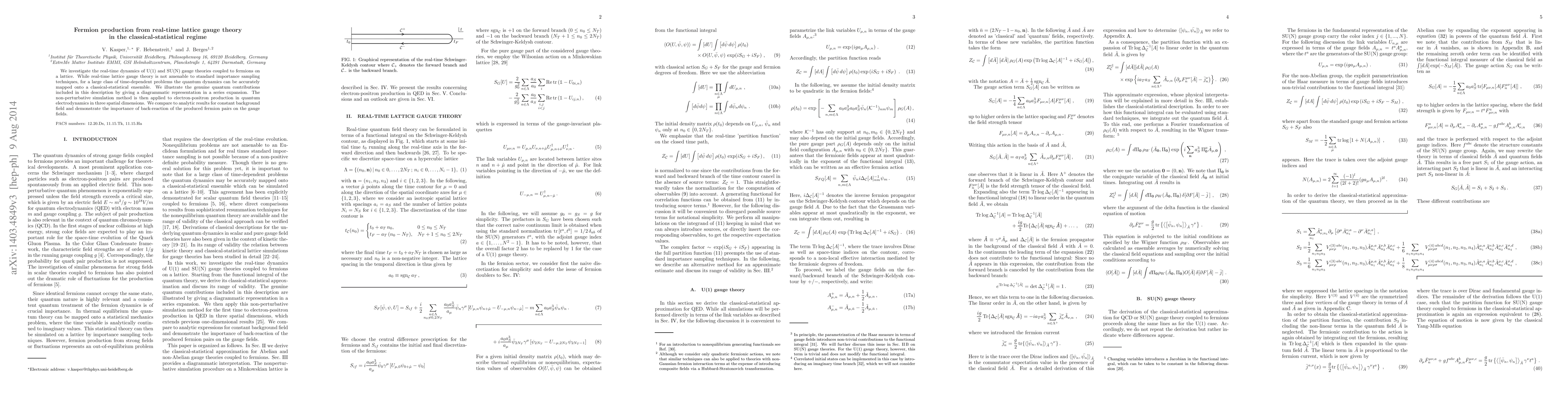 We investigate the real-time dynamics of U(1) and SU(N) gauge theories coupled to fermions on a lattice. While real-time lattice gauge theory is not amenable to standard importance sampling techniques, for a large class of time-dependent problems the quantum dynamics can be accurately mapped onto a classical-statistical ensemble. We illustrate the genuine quantum contributions included in this description by giving a diagrammatic representation in a series expansion. The non-perturbative simulation method is then applied to electron-positron production in quantum electrodynamics in three spatial dimensions. We compare to analytic results for constant background field and demonstrate the importance of back-reaction of the produced fermion pairs on the gauge fields.