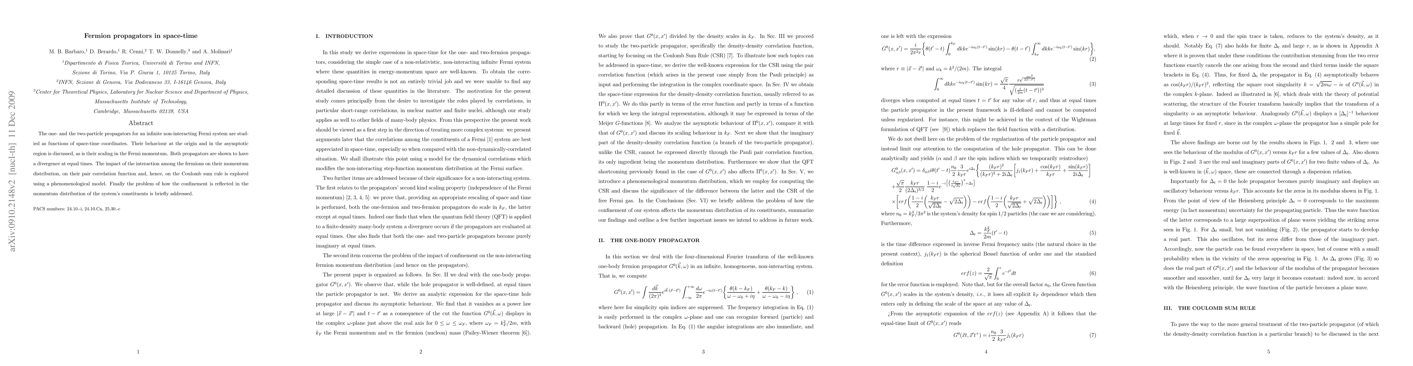 This paper studies Fermion propagators in space-time, showing they diverge at equal times and exploring their impact on system properties with a phenomenological model.