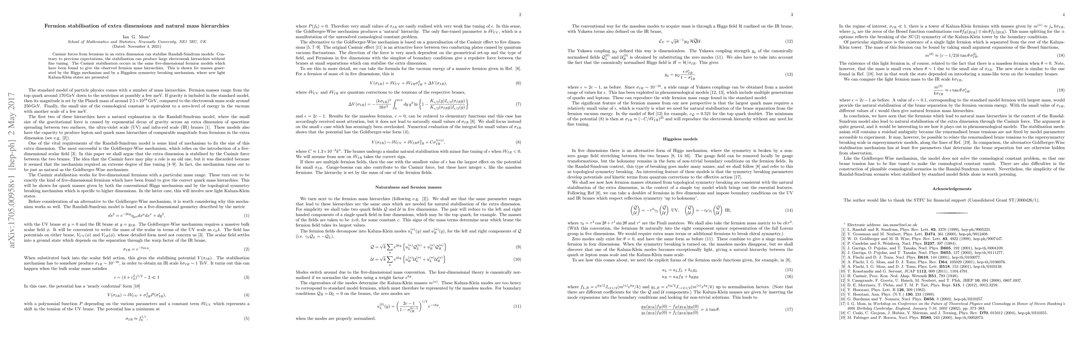 The paper introduces a novel approach to stabilize extra dimensions using Casimir forces from fermions, demonstrating its efficacy in producing natural mass hierarchies without fine-tuning.