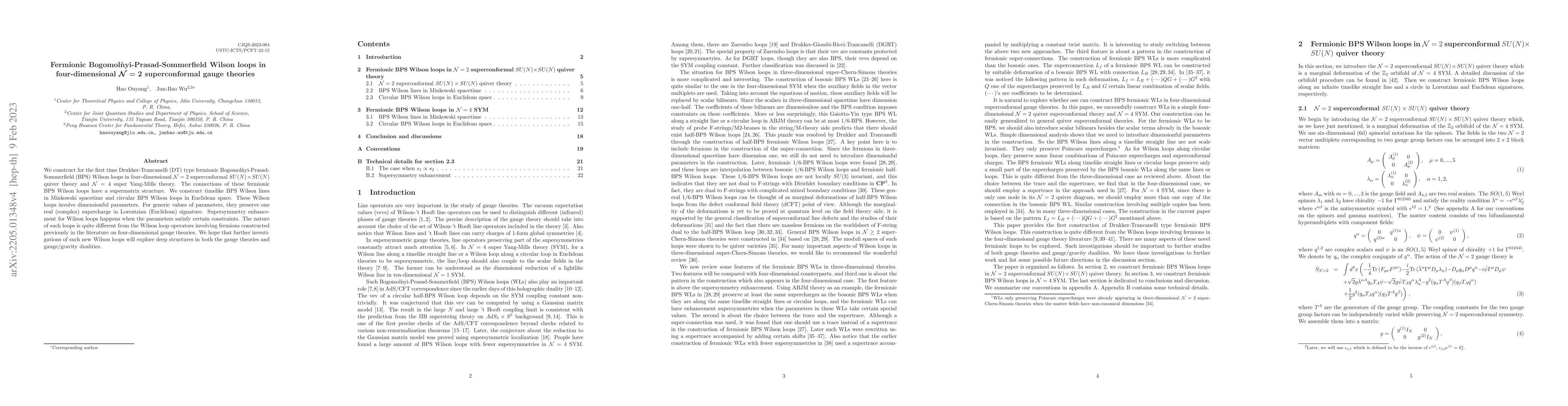 We construct for the first time Drukker-Trancanelli (DT) type fermionic Bogomol\`nyi-Prasad-Sommerfield (BPS) Wilson loops in four-dimensional $\mathcal{N}=2$ superconformal $SU(N)\times SU(N)$ quiver theory and $\mathcal{N}=4$ super Yang-Mills theory. The connections of these fermionic BPS Wilson loops have a supermatrix structure. We construct timelike BPS Wilson lines in Minkowski spacetime and circular BPS Wilson loops in Euclidean space. These Wilson loops involve dimensionful parameters. For generic values of parameters, they preserve one real (complex) supercharge in Lorentzian (Euclidean) signature. Supersymmetry enhancement for Wilson loops happens when the parameters satisfy certain constraints. The nature of such loops is quite different from the Wilson loop operators involving fermions constructed previously in the literature on four-dimensional gauge theories. We hope that further investigations of such new Wilson loops will explore deep structures in both the gauge theories and gauge/gravity dualities.