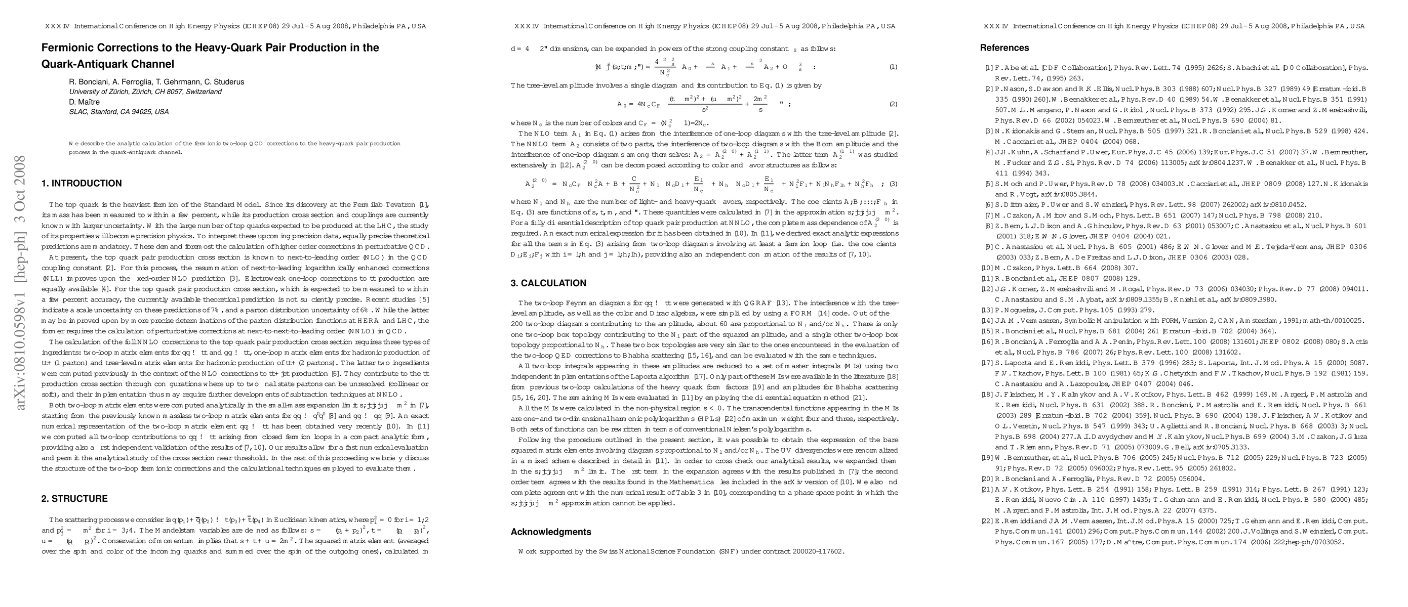 We describe the analytic calculation of the fermionic two-loop QCD corrections to the heavy-quark pair production process in the quark-antiquark channel.