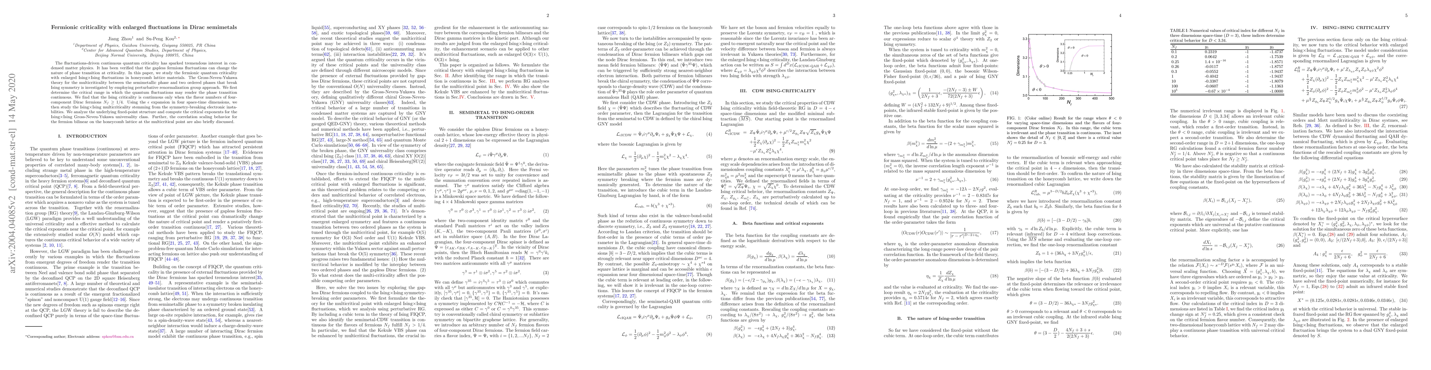 This paper investigates fermionic quantum criticality and enlarged fluctuations in Dirac semimetals using the Gross-Neveu-Yukawa theory. It determines that Ising criticality becomes continuous when the flavor numbers of Dirac fermions are $N_f\geq1/4$, and employs an $\epsilon$ expansion to analyze the Ising$\times$Ising multicriticality, computing critical exponents and discussing correlation scaling behavior.
