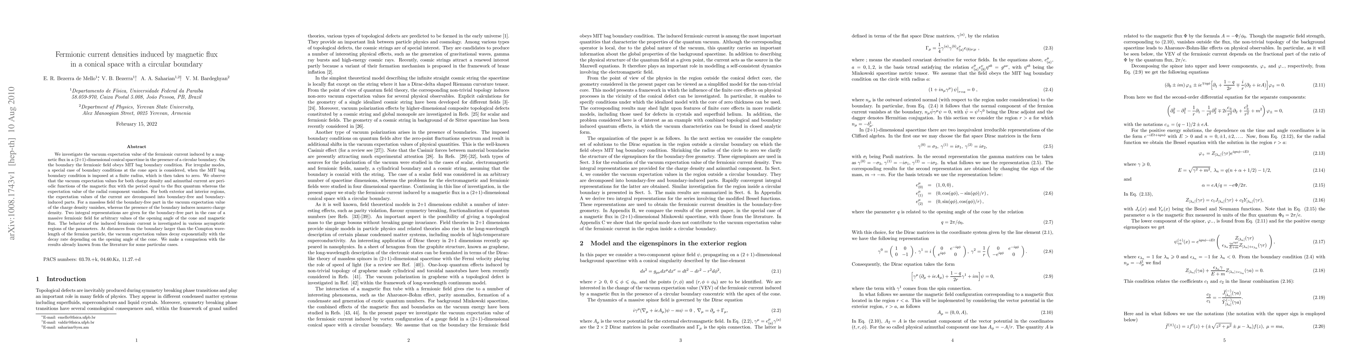 This research paper investigates how magnetic flux affects fermionic current densities in a conical space with a circular boundary, finding periodic functions for charge density and azimuthal current with a period equal to the flux quantum.