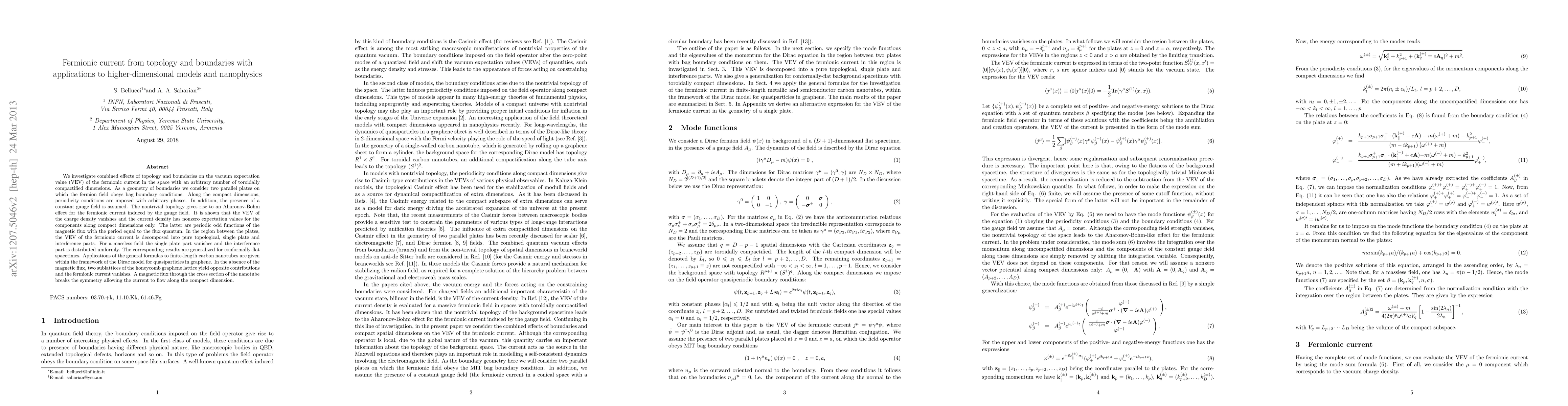 This paper explores the combined effects of topology and boundary conditions on the vacuum expectation value of fermionic current in higher-dimensional models, showing that the current density along compact dimensions is a periodic odd function of the magnetic flux. Applications to carbon nanotubes reveal that a magnetic flux can induce a current flow, breaking the symmetry between sublattices.