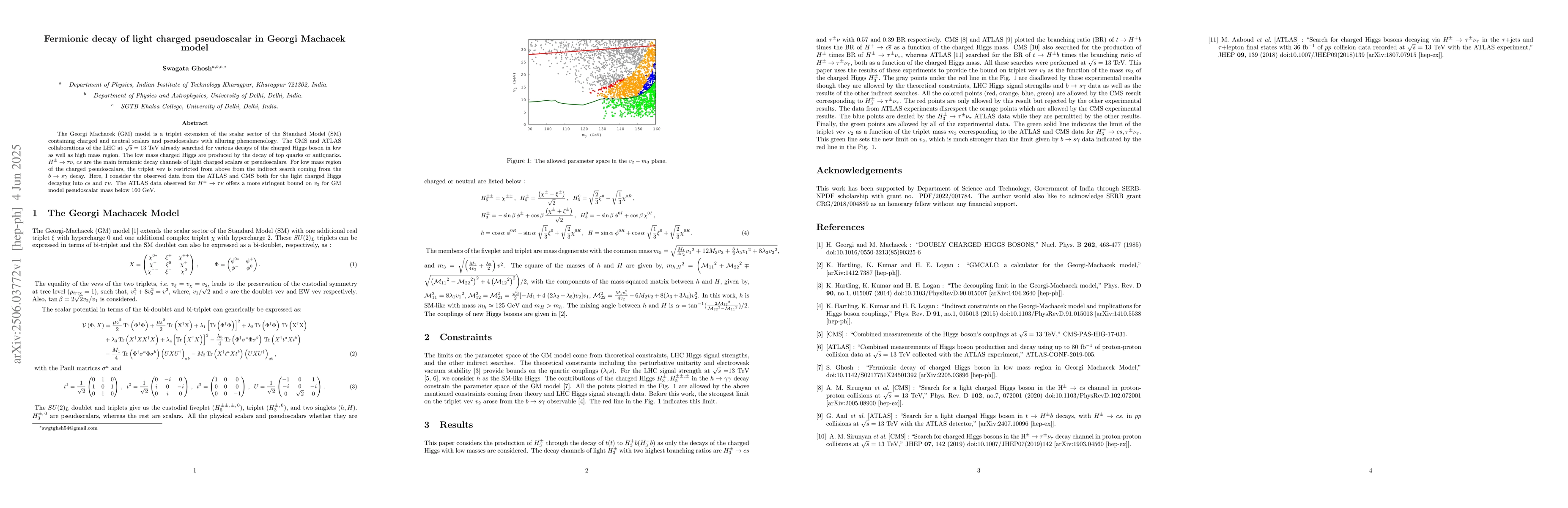 Researchers investigated the decay of light charged pseudoscalars in the Georgi Machacek model, finding a more stringent bound on mass below 160 GeV for certain decay channels.