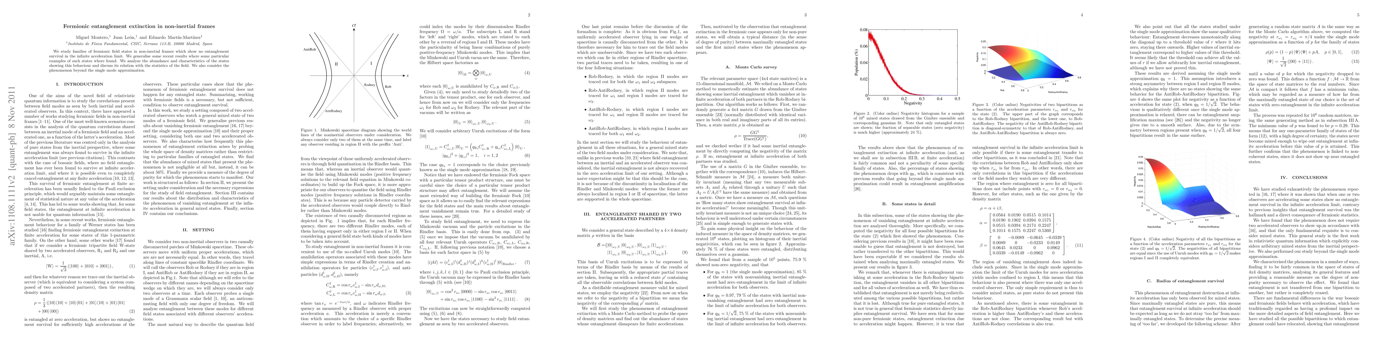 This paper investigates fermionic field states in non-inertial frames, finding that entanglement vanishes in the infinite acceleration limit, and generalizes previous findings on specific examples. It explores the prevalence and properties of these states and their connection to the field's statistics, extending beyond single mode approximations.